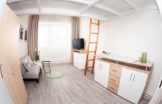 Jedná se o pronájem kompletně vybavené bytové jednotky o velikosti 2+1. K dispozici je moderní kuchyně včetně lednice, sklokeramické desky, mikrovlnné trouby, varné konvice, digestoře a dřezu. Zároveň se v kuchyni nachází jídelní stůl se židlemi. Bytová jednotka dále nabízí dva vzájemně neprůchozí pokoje. V každém pokoji naleznete dvě prostorné postele s pohodlnou matrací. U postele dále naleznete noční stolek s lampičkou. Každý pokoj má dva pracovní stoly s úložným prostorem, dvě pohodlné židle a prostornou skříň. Tento byt je tedy kompletně zařízen až pro 4 osoby. Koupelna nabízí sprchový kout, záchod a umyvadlo se zrcadlem. Součástí jednotky je internetové připojení. Ke každé bytové jednotce nabízíme možnost sjednání parkovací karty s 50% slevou.