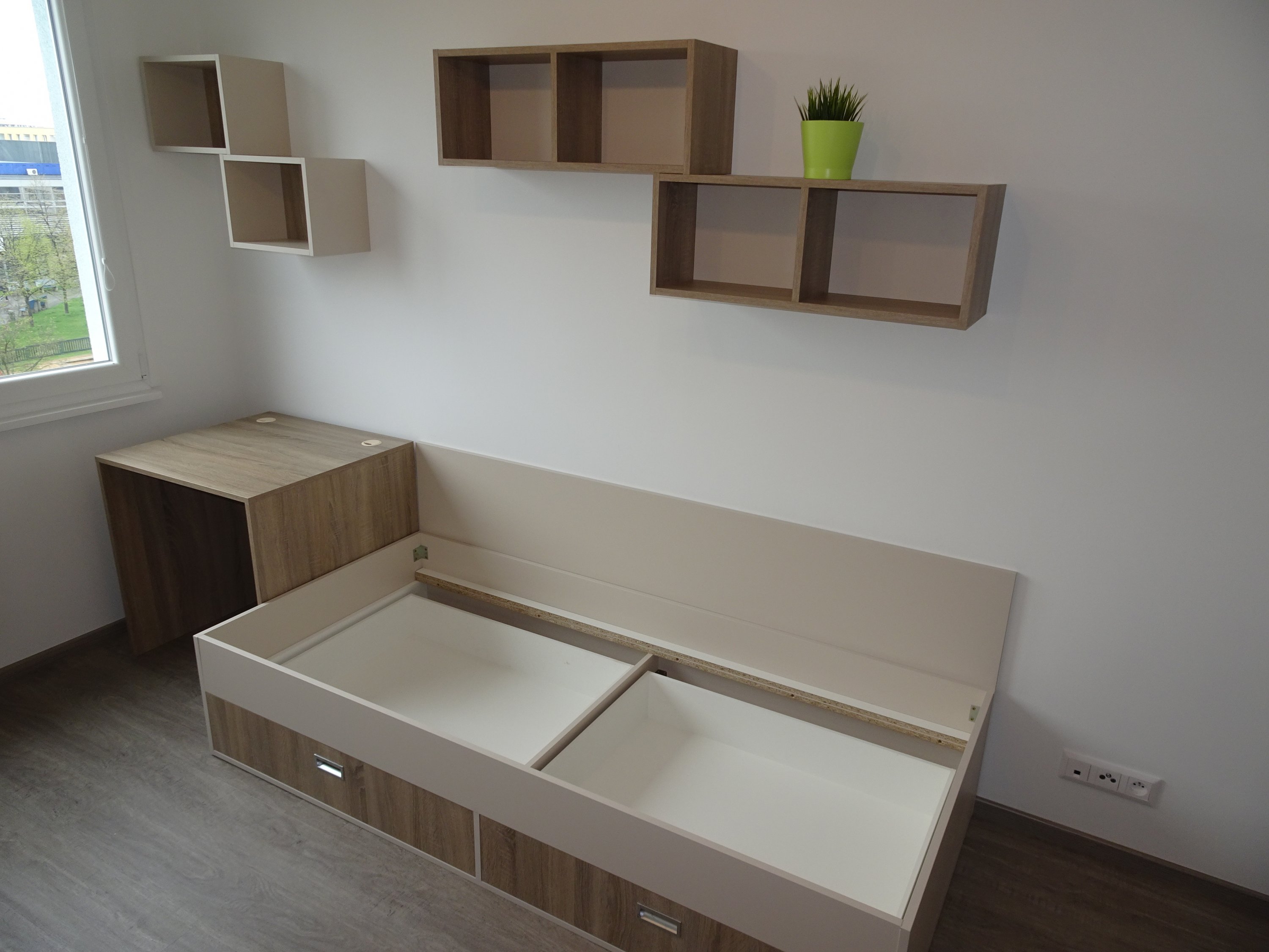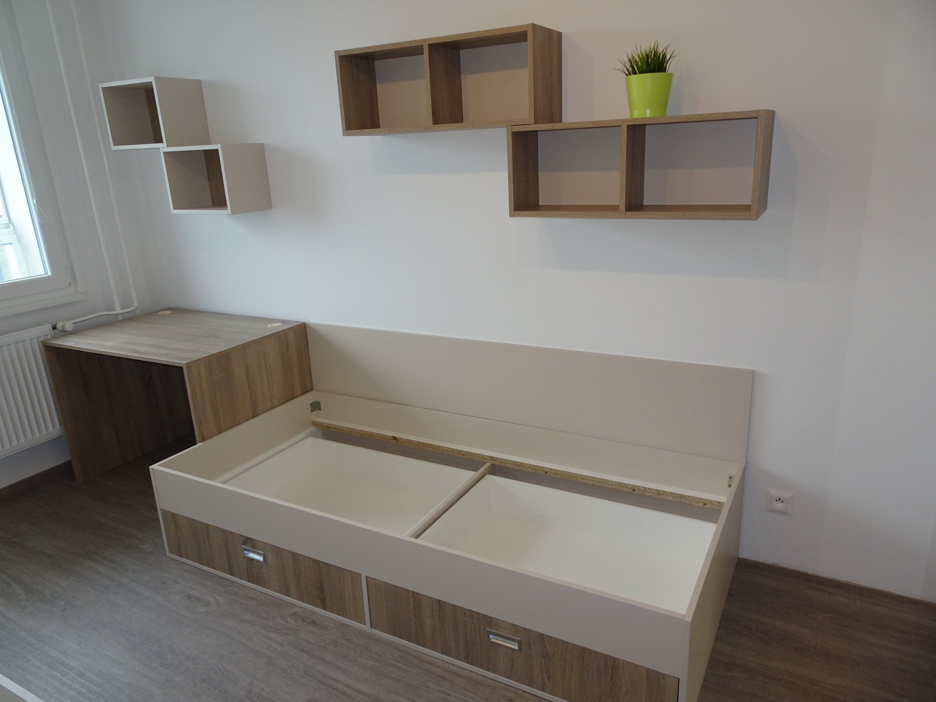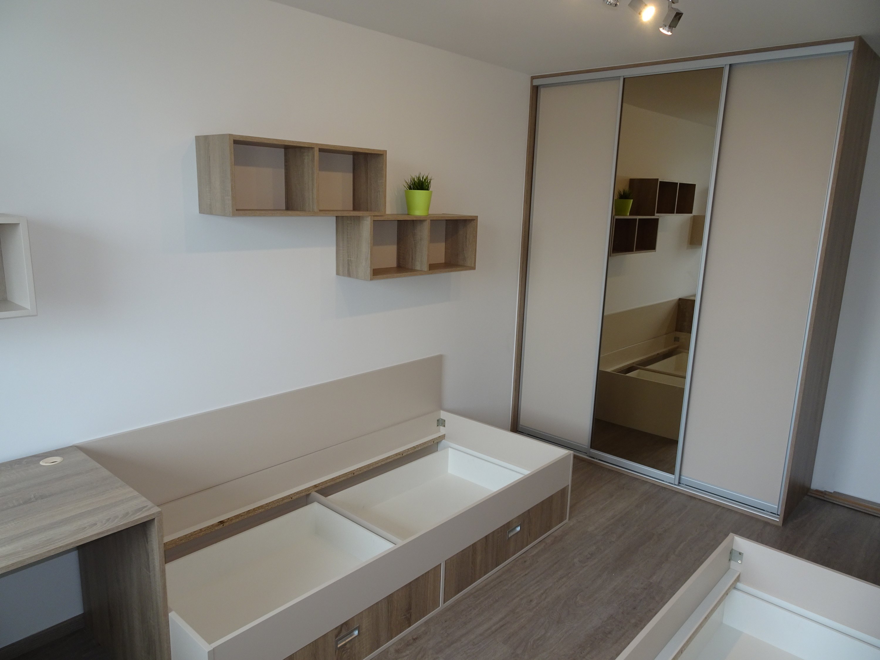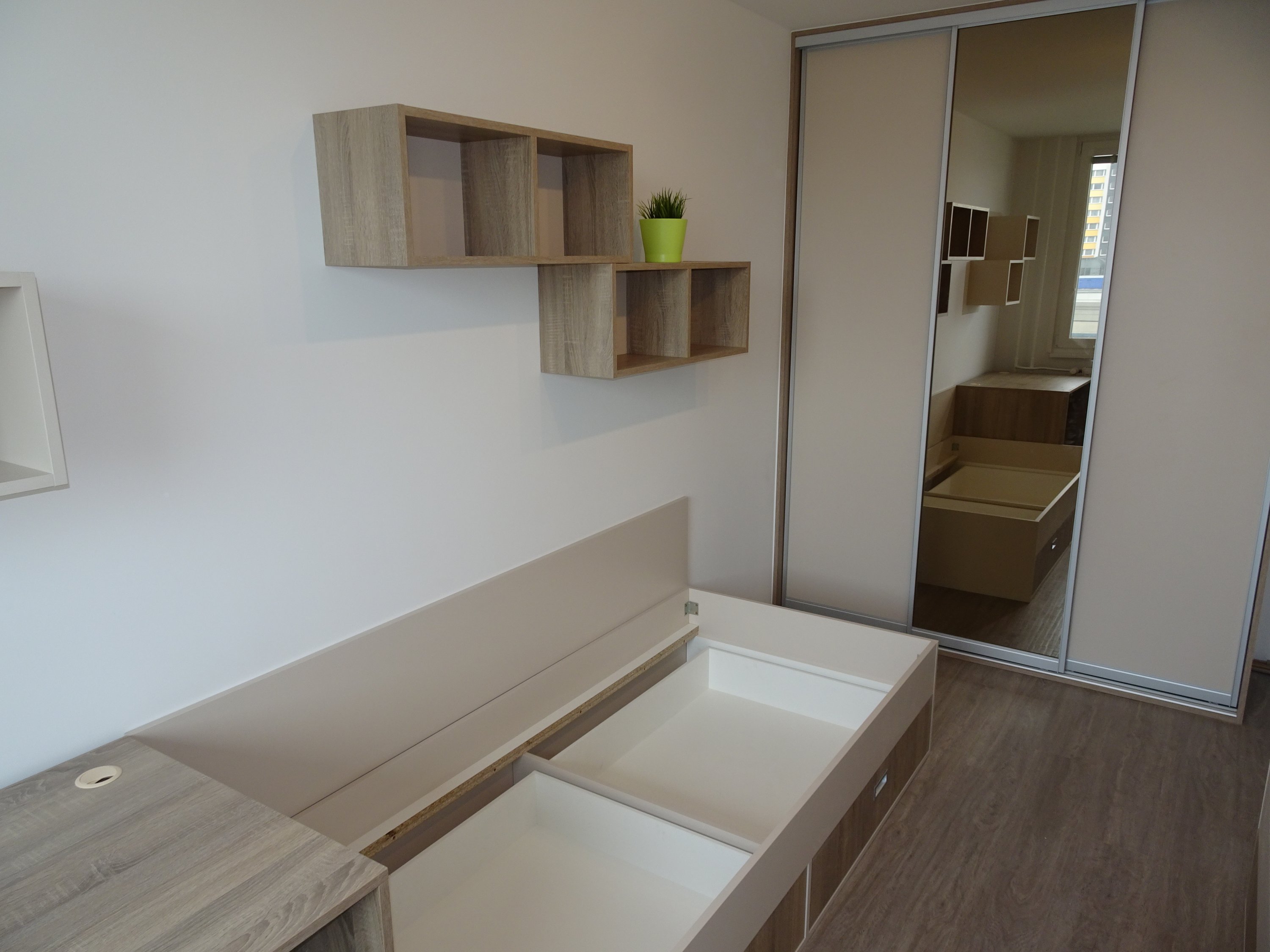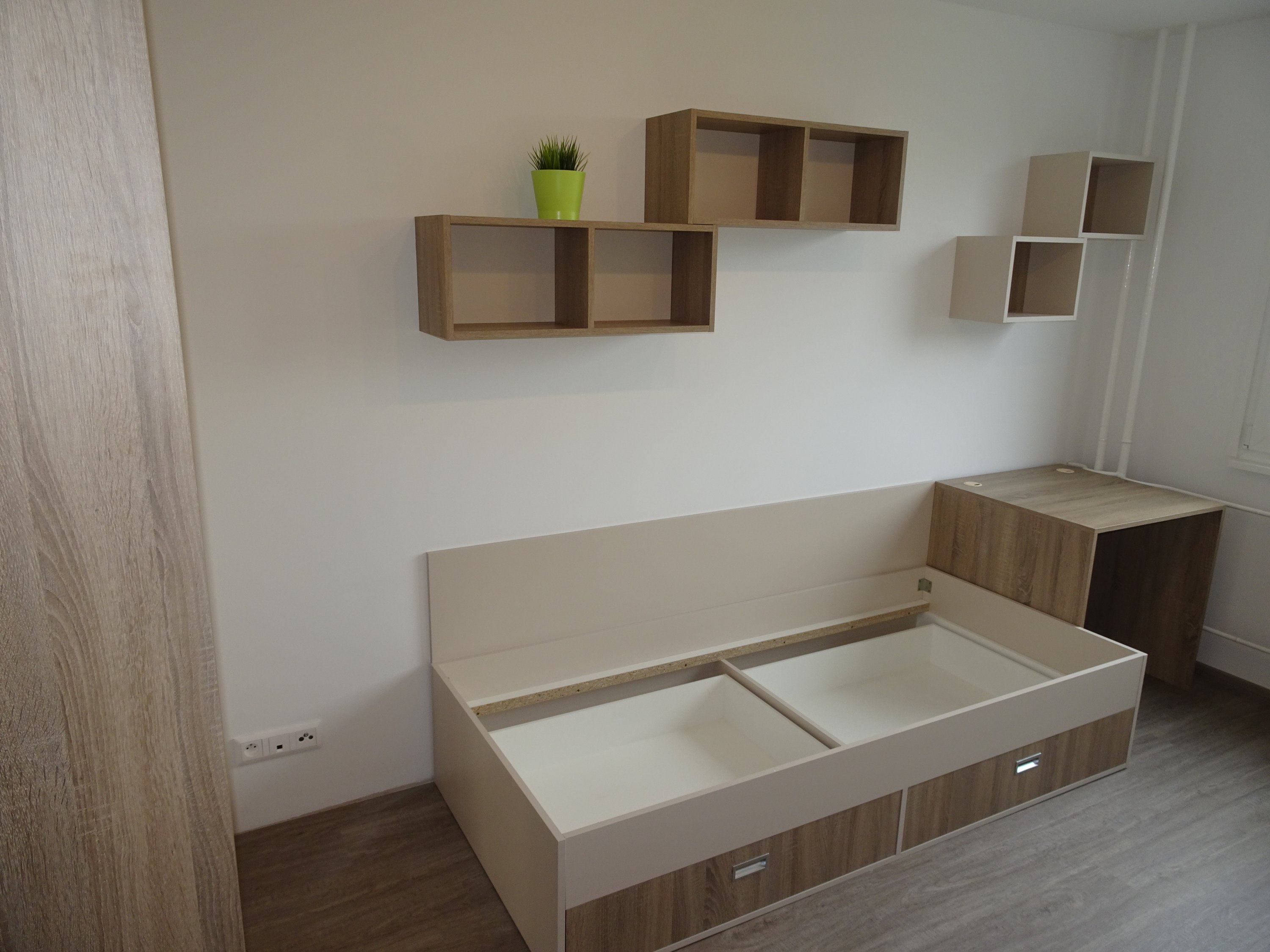 2. pokoj pro 2 studenty - dvě samostatná lůžka, 1x kancelářský stůl, vestavěná skříň, TV, balkon (zasklený)