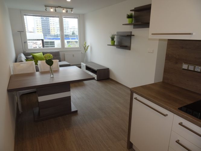 Krásný moderní byt 3+kk (2x pokoj pro 2 studenty) je po celkové rekonstrukci a plně zařízen (včetně 3xTV, internet a WI-FI připojení, pračka, sušička apod.)