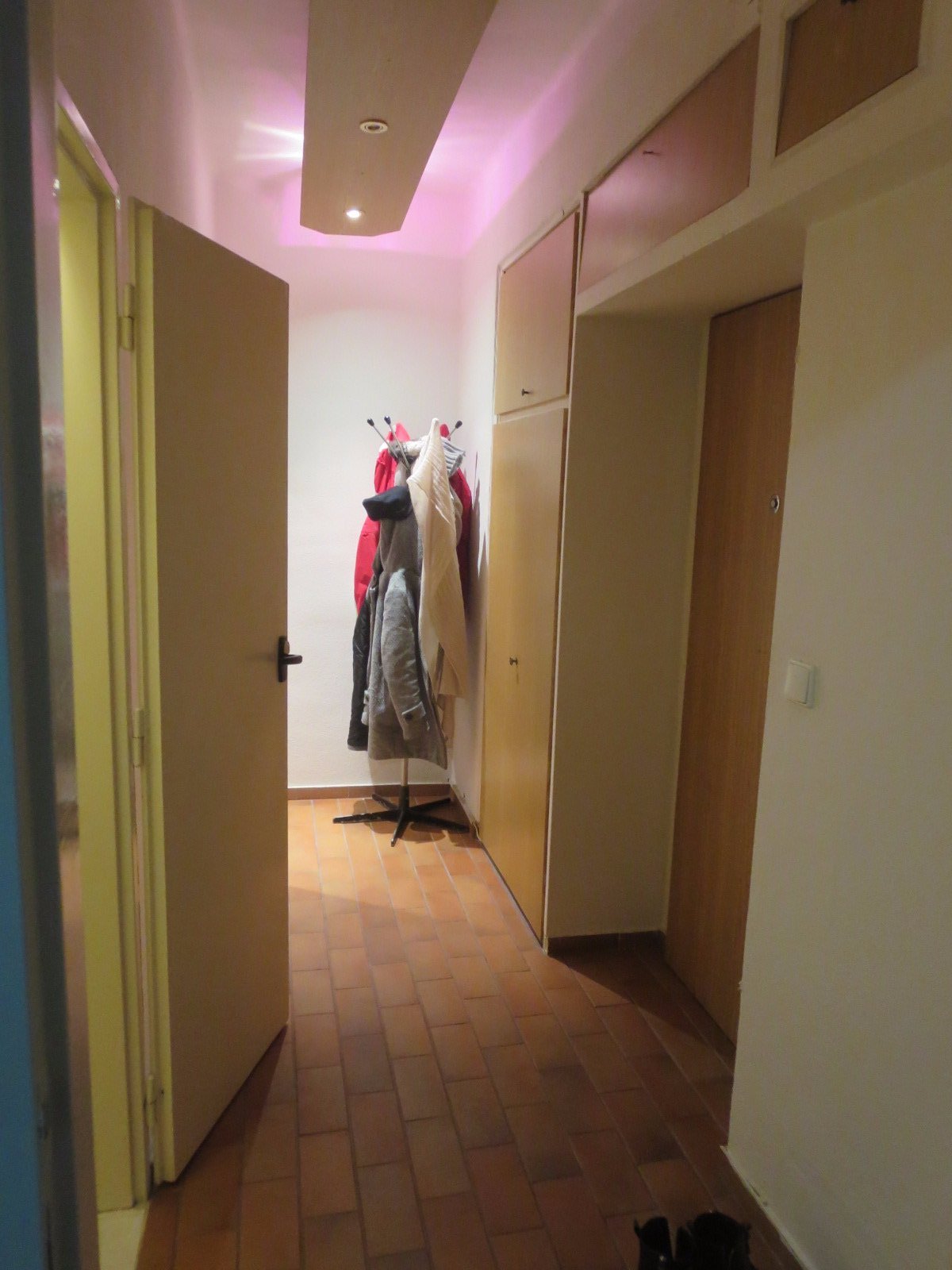 Byt se nachází v zateplené cihlové budově s plastovými okny. V pokojích jsou parkety, v kuchyni a na chodbě dlažba. V jednom pokoji se nachází šatna na oblečení. Koupelna je vybavena vanou a sprchovým závěsem, WC je umístěno v samostatné místnosti. Po domluvě je možno zanechat lednici a postel v pokoji.