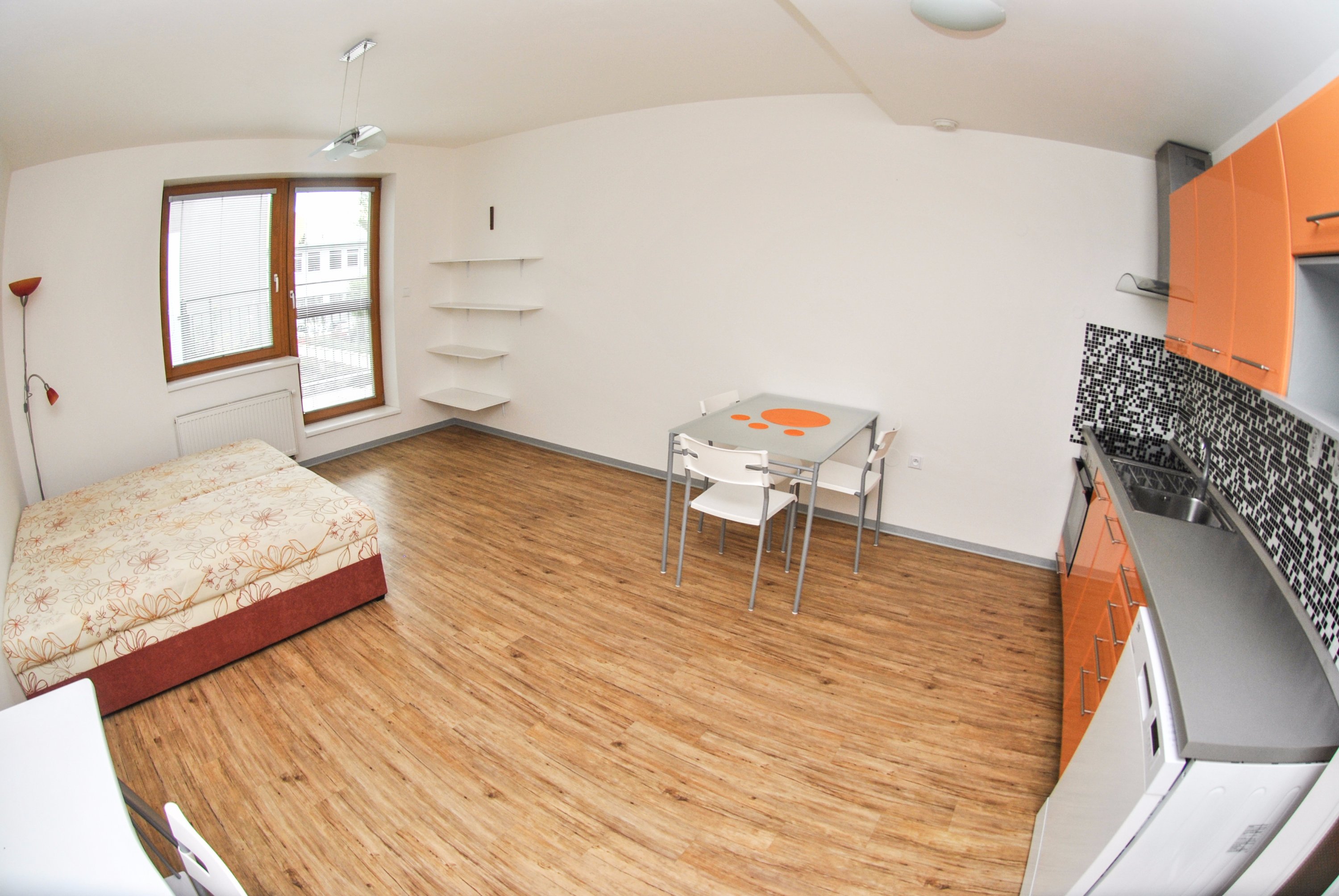 Nabízíme vybavený byt 1+kk s teráskou na ulici Kovářská v Brně. Byt je vybaven postelemi, úložným prostorem v podobě vestavěných skříní, pračkou se sušičkou, kuchyní včetně spotřebičů. K bytu patří balkón směřující do vnitrobloku, nájemníci mají taktéž přístup do zahrady. Parkování možné přímo před budovou.