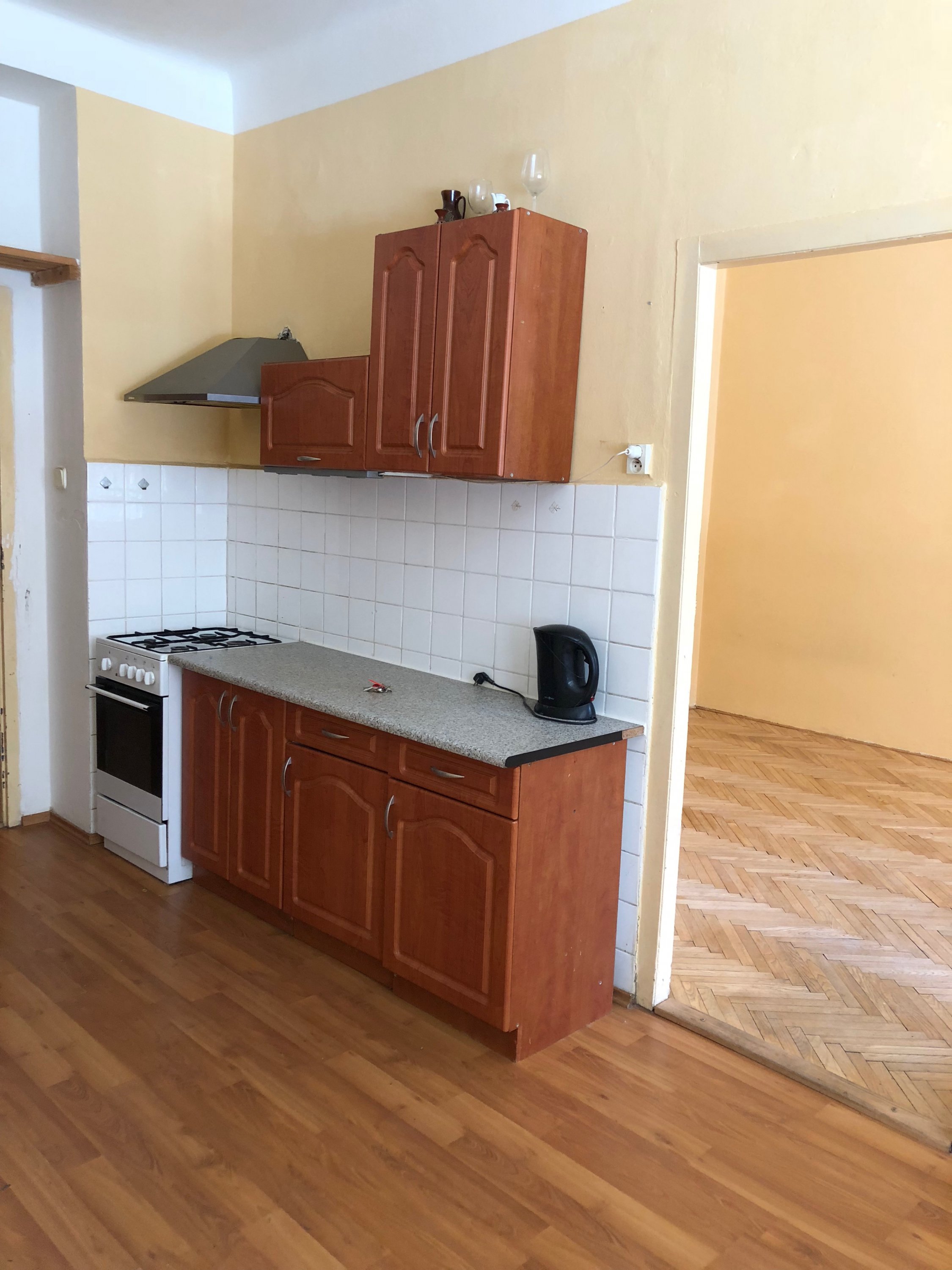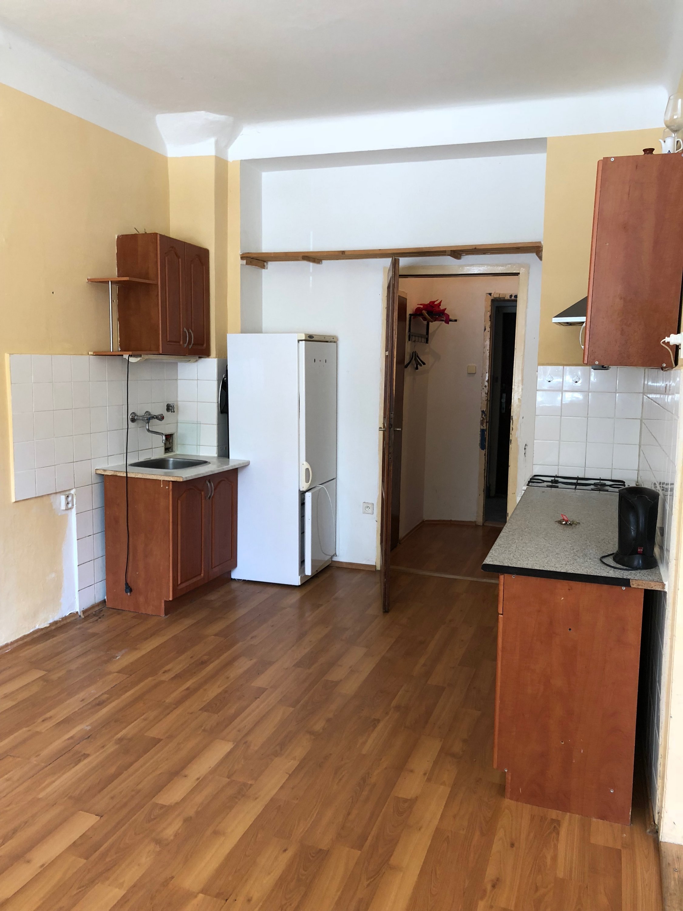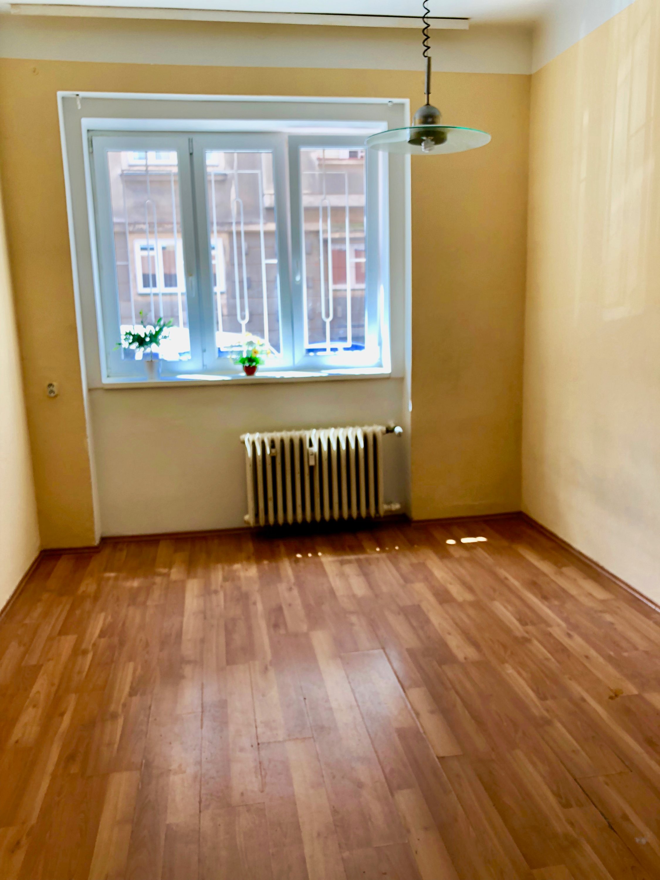 V bytě není žádný nábytek. V pokoji jsou parkety. Ústřední vytápění, teplá voda. Poplatek za elektřinu pouze za pračku a drobné dom. spotřebiče. Plynový sporák.