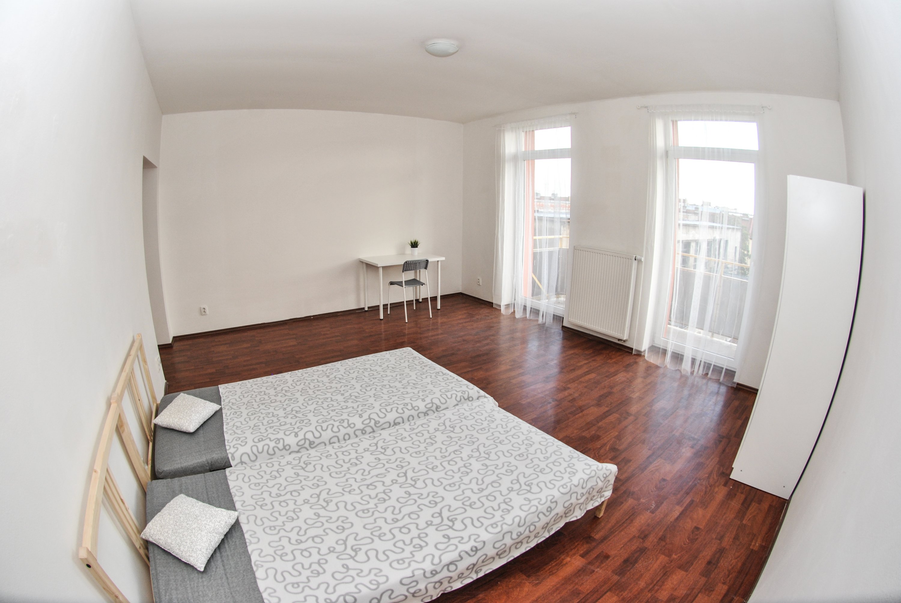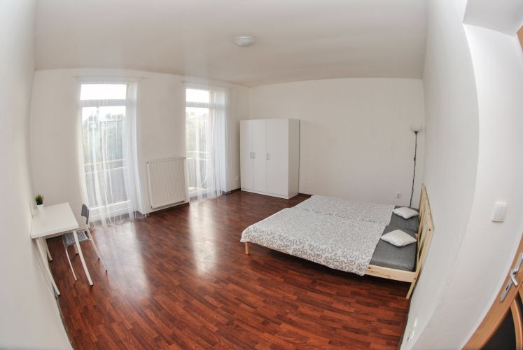 Spacious room with balcony for 1-2 persons in a 2 + 1 apartment on Spolkova street near the city center. The room is equipped with 2 beds, wardrobe, 2 desks and chairs. Common areas of the apartment in the form of hall with shoe, dressing room, kitchen (fridge, stove, oven), bathroom (including washing machine) and separate toilet.