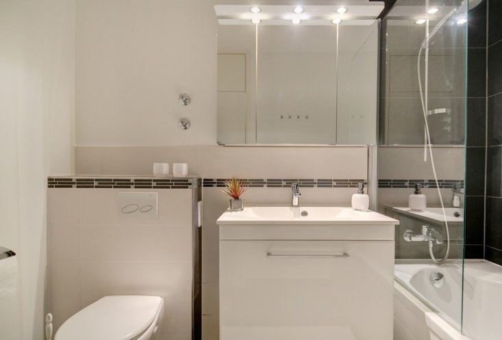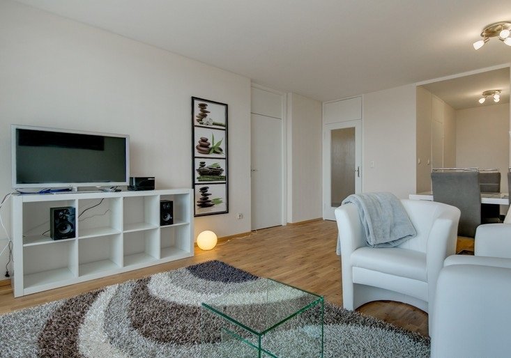 Kompletně zařízený. Život (25m2), TV 106cm, návrh interiéru a nábytek. Spaní (12m2), manželská postel 160cm, včetně ložního prádla. Kuchyně (10 m2), sklokeramická deska, parní stroj, kávovar Nespresso, nádobí, sklenice, příbory, pánve atd. Koupelna (10 m2), TV 82 cm, vana a sprchový kout, pračka.