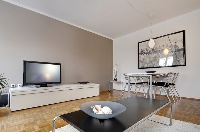 Vysoce kvalitní materiály, jako jsou: parketové podlahy, dlažba v sanitárních prostorách, dřevěné dveře a rámy v obývacím prostoru.