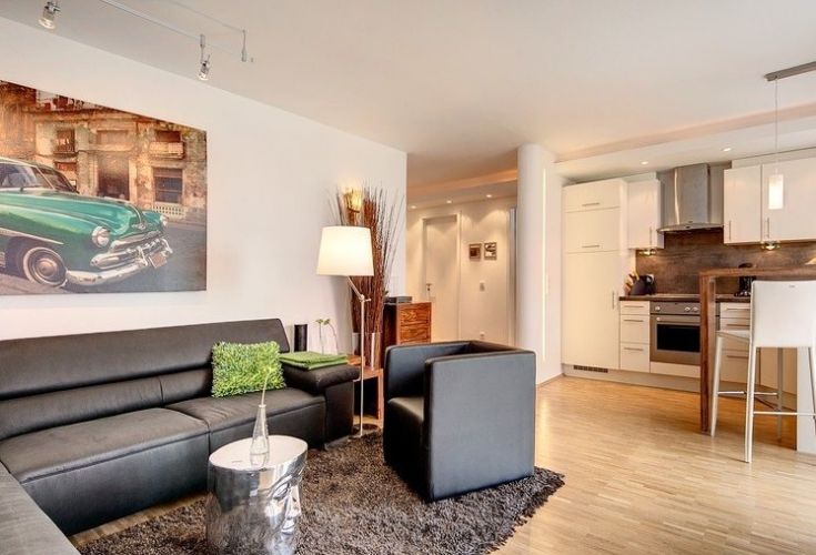 Kuchyně: kuchyňská linka s vysokou kvalitou, obývací pokoj, dobře vybavenou, s okny, sklokeramickou deskou, digestoří, elektrickou troubou, kávovarem, lednicí, myčkou, lednicí s mrazničkou.