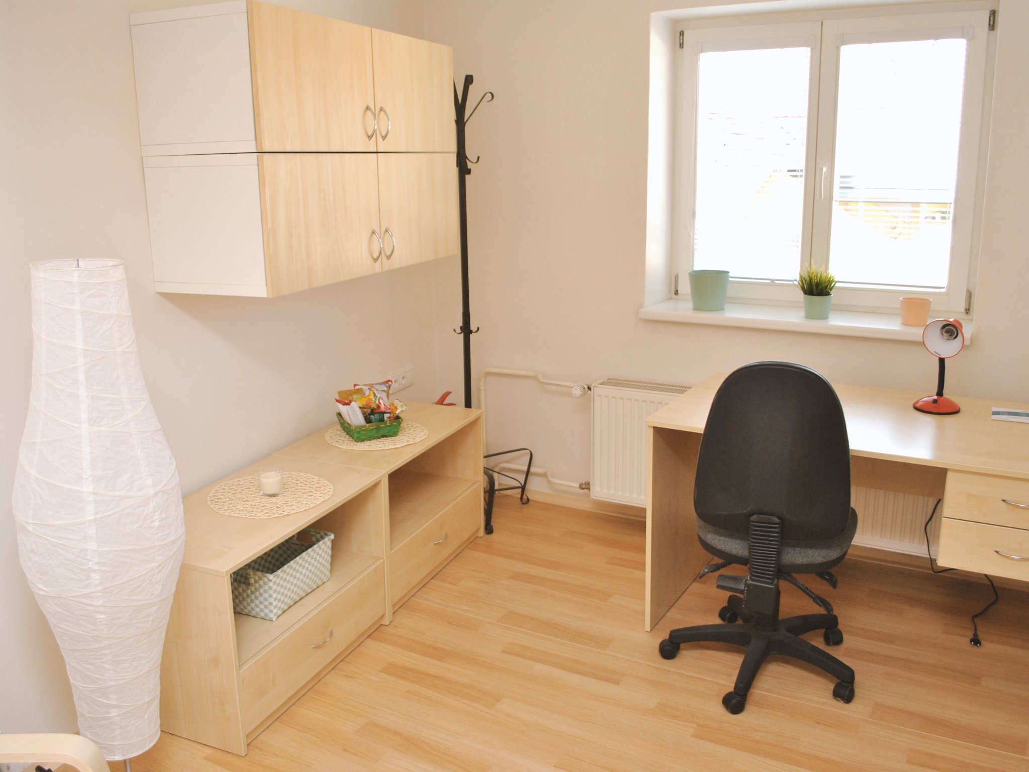 We offer from 1.7.2023 free apartment 1+kk for rent in the city center on Dominican Square. This is a smaller apartment 1+kk on the last floor of a historic building. The apartment is equipped with two beds (+ bed linen), desk, chair, wardrobe and other storage space. There is a small kitchenette in the room. In another room there is a toilet and a wc - separately.