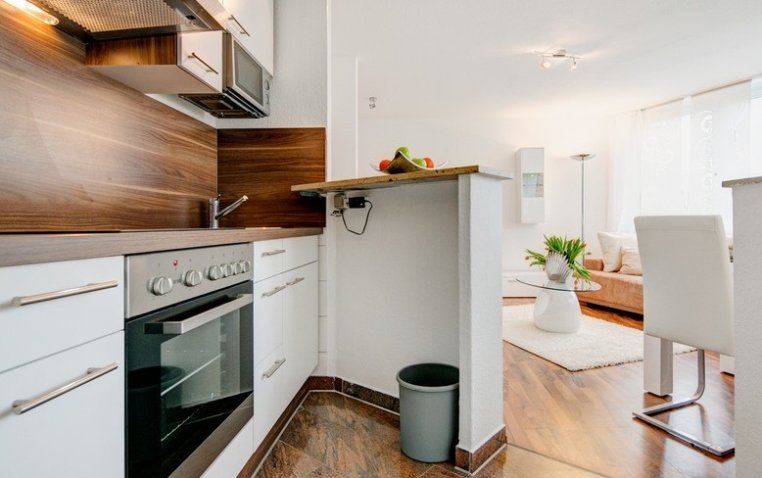 Kompletně nová kuchyň, plně vybavená troubou, mikrovlnnou troubou, lednicí atd.