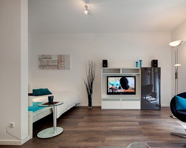 Laminát v obytném prostoru, dlaždice z porcelánu