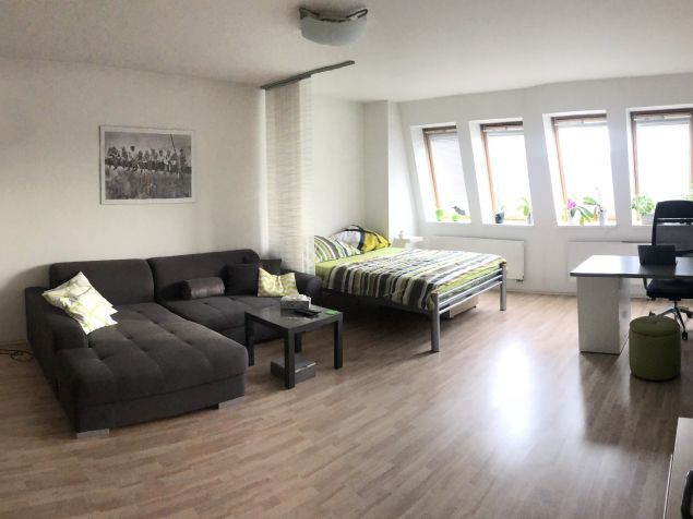 Pronajmu prostorný jednopokojový byt o velikosti 47m2 na ulici Handkeho. Byt se nachází v 6 nadzemním podlaží, má klimatizaci a je zařízen. Byt je k nastěhování od 1.9.2019.