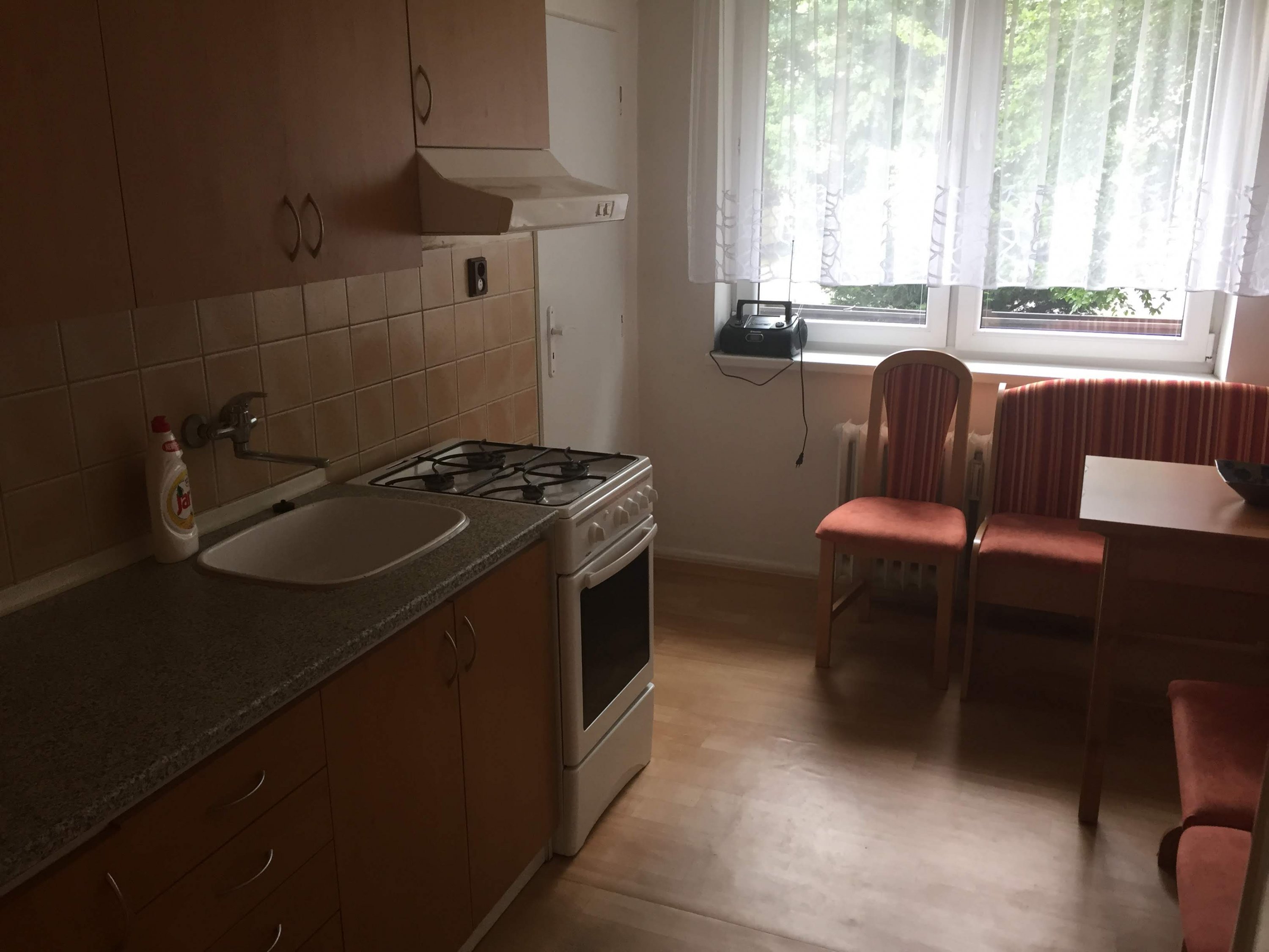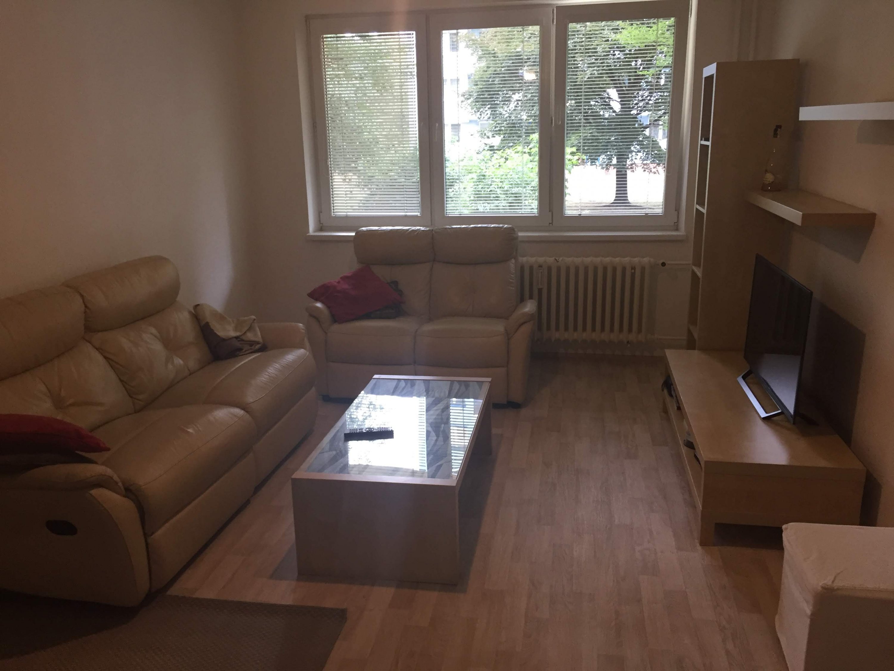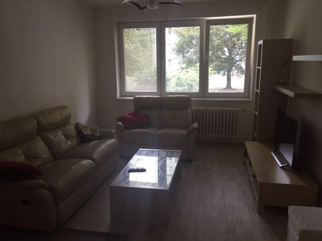 Byt je zařízený (mikrovlnka, lednička+mrazák, pračka, sedačka, TV, konferenční stolek). Připraveno ihned k nastěhování.