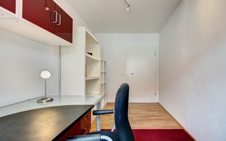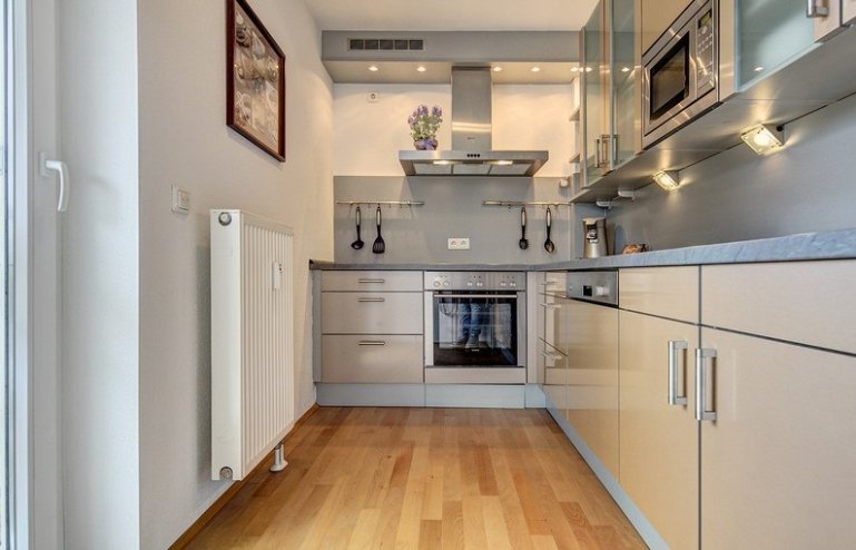 V bytě je velká světlem zaplavená kuchyně, vybavená vysoce kvalitní kuchyně se všemi spotřebiči, ložnice, 1 koupelna, 1 toaleta a 1 kancelářské prostory.