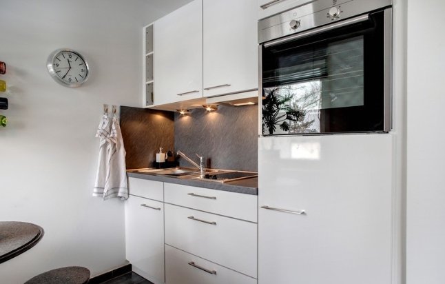 Plně zařízený byt, světlé, otevřené prostory, čelní výplně, v obývacích pokojích parkety, v koupelně keramická dlažba. Moderní kuchyňské spotřebiče: sklokeramická deska, trouba, myčka, lednice s integrovanou mrazničkou.