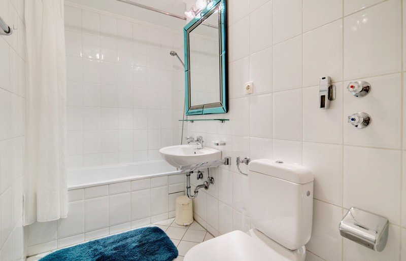 Koupelna je vybavena vanou, umyvadlem, bidetem a toaletou.