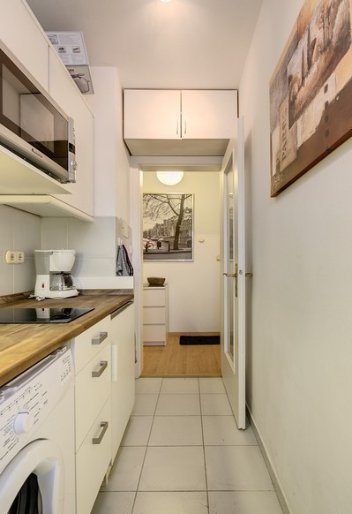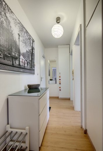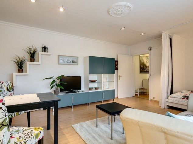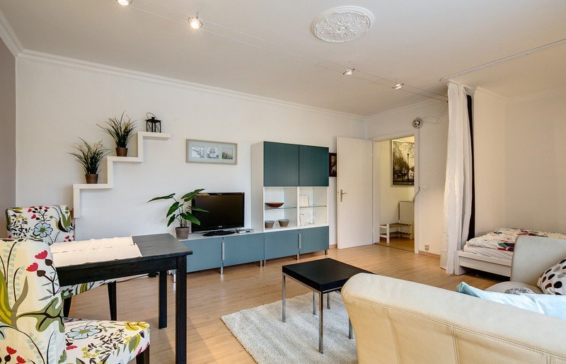 Světlý, prostorný byt. Uzavřená kuchyně, obývací pokoj / ložnice s parketovou podlahou, vestavěné skříně.