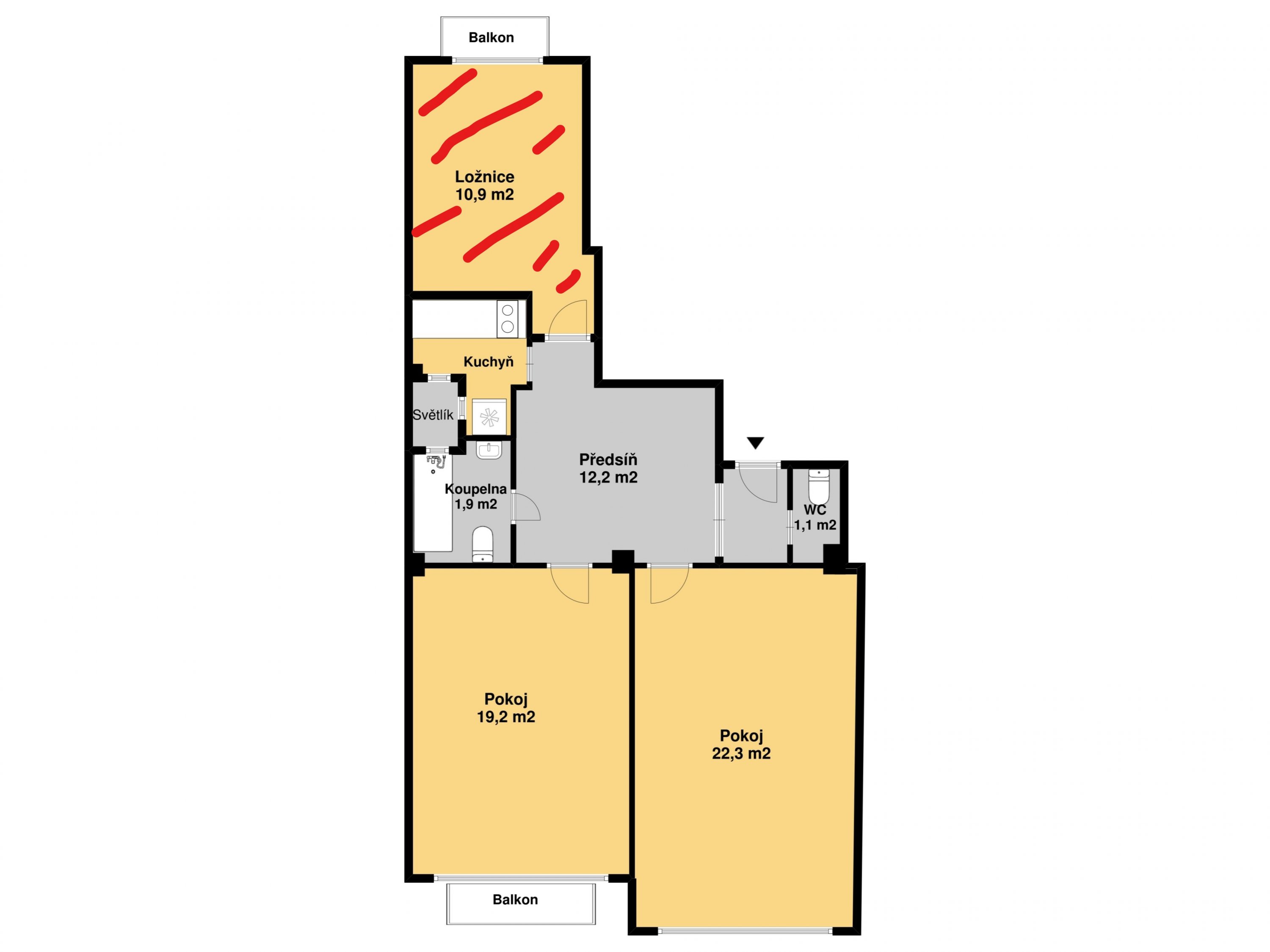 - 3 neprůchozích ložnic, kdy jednu z ložnic obývám já a zbylé dvě pronajímám,
