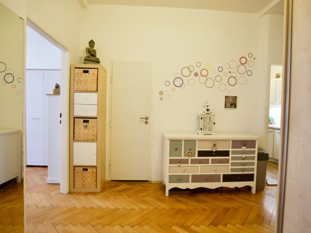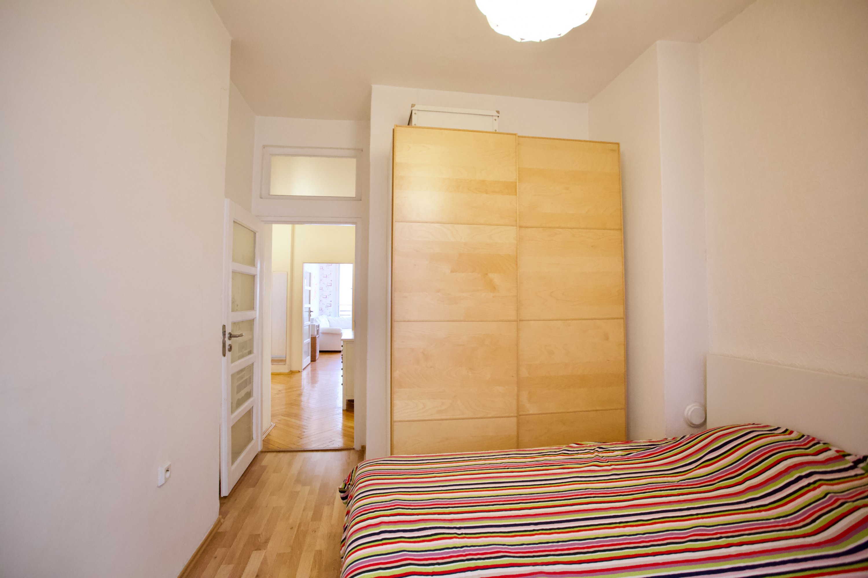 Please note that the photos were taken with furniture of the previous tenants. Therefore they are not entirely up to date. The bedroom is currently equipped with a spacious built-in wardrobe where you can fit everything you need and, new lamp, queen size bed (160 cm; eventually sofa if desired). Nevertheless, the bedroom can be (re-)equipped with furniture based on our mutual agreement and your requirements as well as I am considering continuous refurnishment of the entire apartment.