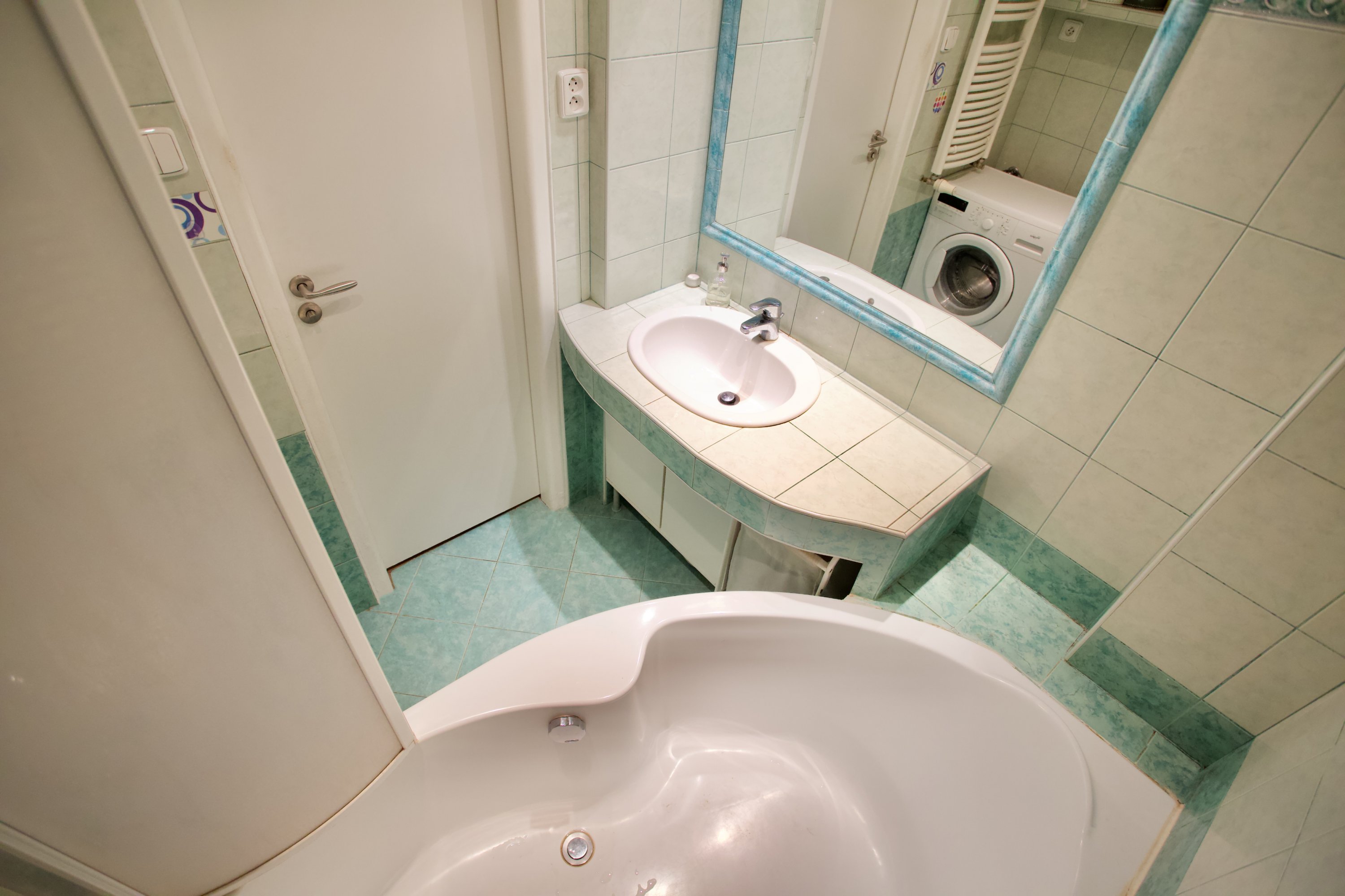 - koupelny s prostornou vanou (se sprchou samozřejmě), umyvadlem a pračkou,