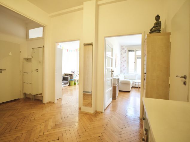 I offer a private bedroom (10.9 m²) for long-term lease in an apartment with three separate bedrooms, kitchen, bathroom, toilet and hall (total floor area of 72.9 m²). The offered bedroom has a small balcony and windows oriented to the south into a quiet courtyard as well. The apartment is located on the third floor on an excellent address on the borderline of New Town and Karlín quarters. If you are not a fan of up the stairs run, there is a brand new elevator in the building.
