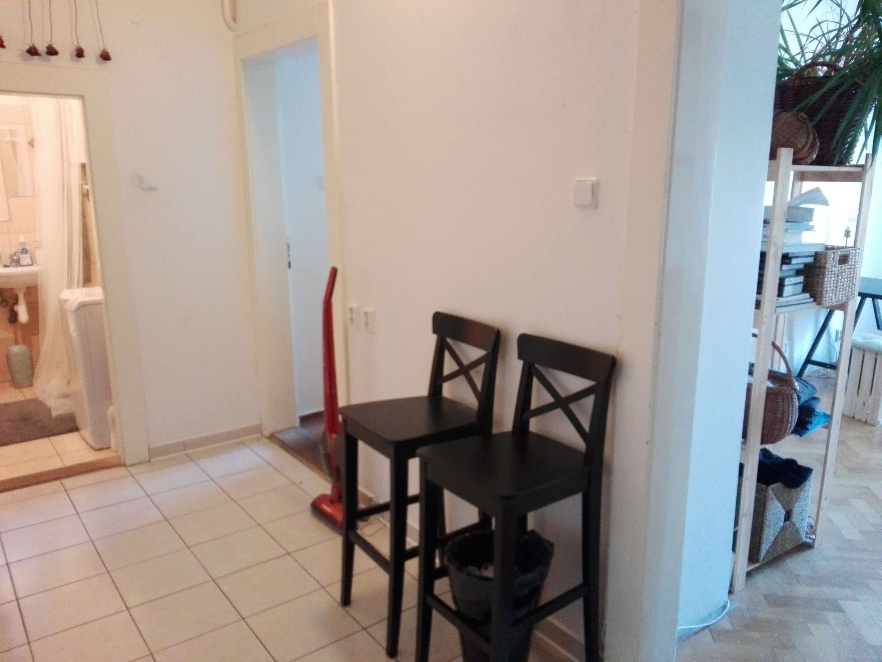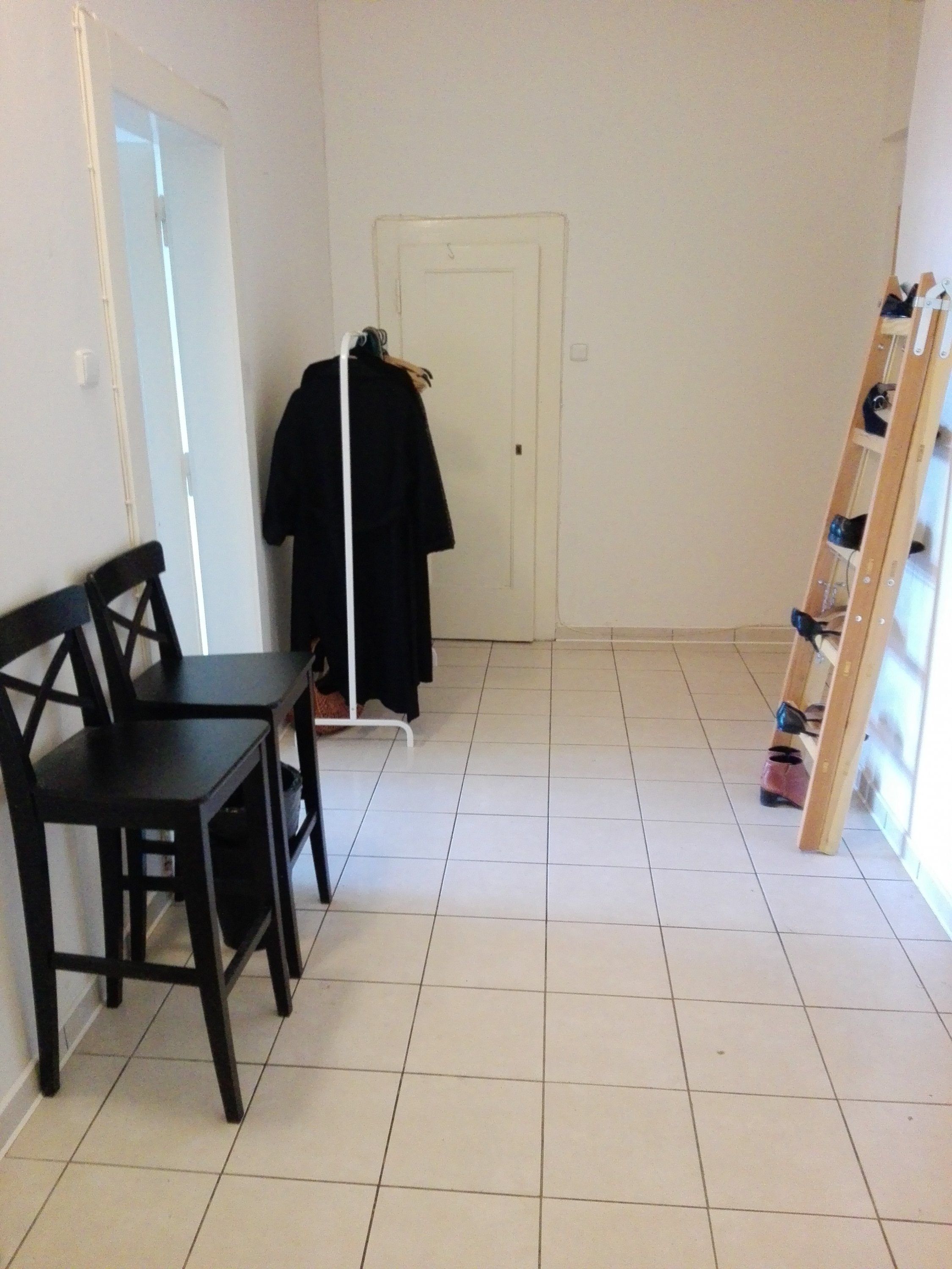 Studio flat with small kitchen for one person. Nicely separated by hall from my studio. We share hall and bathroom in the apartment. Partially furnished. Female preferred.