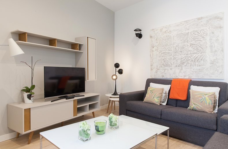 Byt má integrovanou kuchyň v obývacím pokoji, dvě koupelny se sprchou, obývací pokoj a dvě velké ložnice.