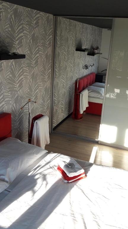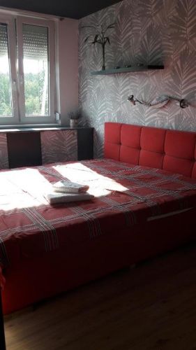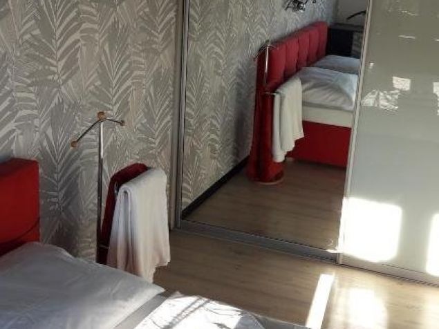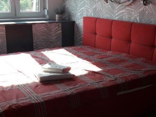 Pokoj je světlý s výhledem na les a je vybaven velkou postelí, zrcadlovou skříní, psacím stolem,...