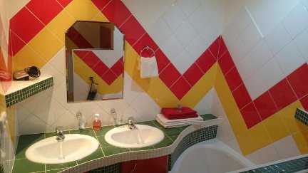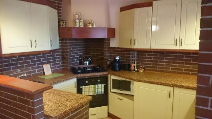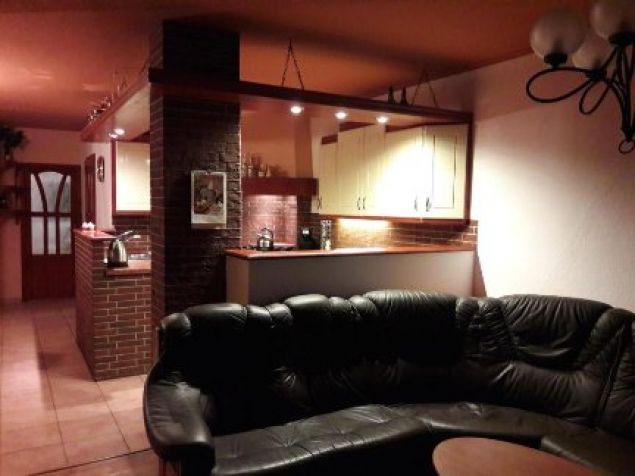 Byt je plně vybaven. Je zde koupelna, dvě toalety, jídelna, předsíň s velkými úložnými prostory, prostorný obývací pokoj s výhledem na les a plně vybavená kuchyně (sporák, trouba, mikrovlnka, lednice, myčka a pračka). Ve sklepě je také kolárna a sušárna. V bytě jsou dále dva obsazené pokoje jsou zde dva kluci. Jeden z Francie - je zde na pracovní stáži, druhý z Kazachstánu - pracuje v Praze jako chirurg - lehce se domluví česky. Jinak oba hovoří anglicky a i dalšími jazyky, jsou pracovití a zodpovědní, není s nimi žádný problém.