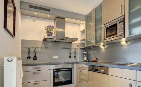 V bytě je velká světlem zaplavená kuchyně, vybavená vysoce kvalitní kuchyně se všemi spotřebiči, ložnice, 1 koupelna, 1 toaleta a 1 kancelářská místnost.