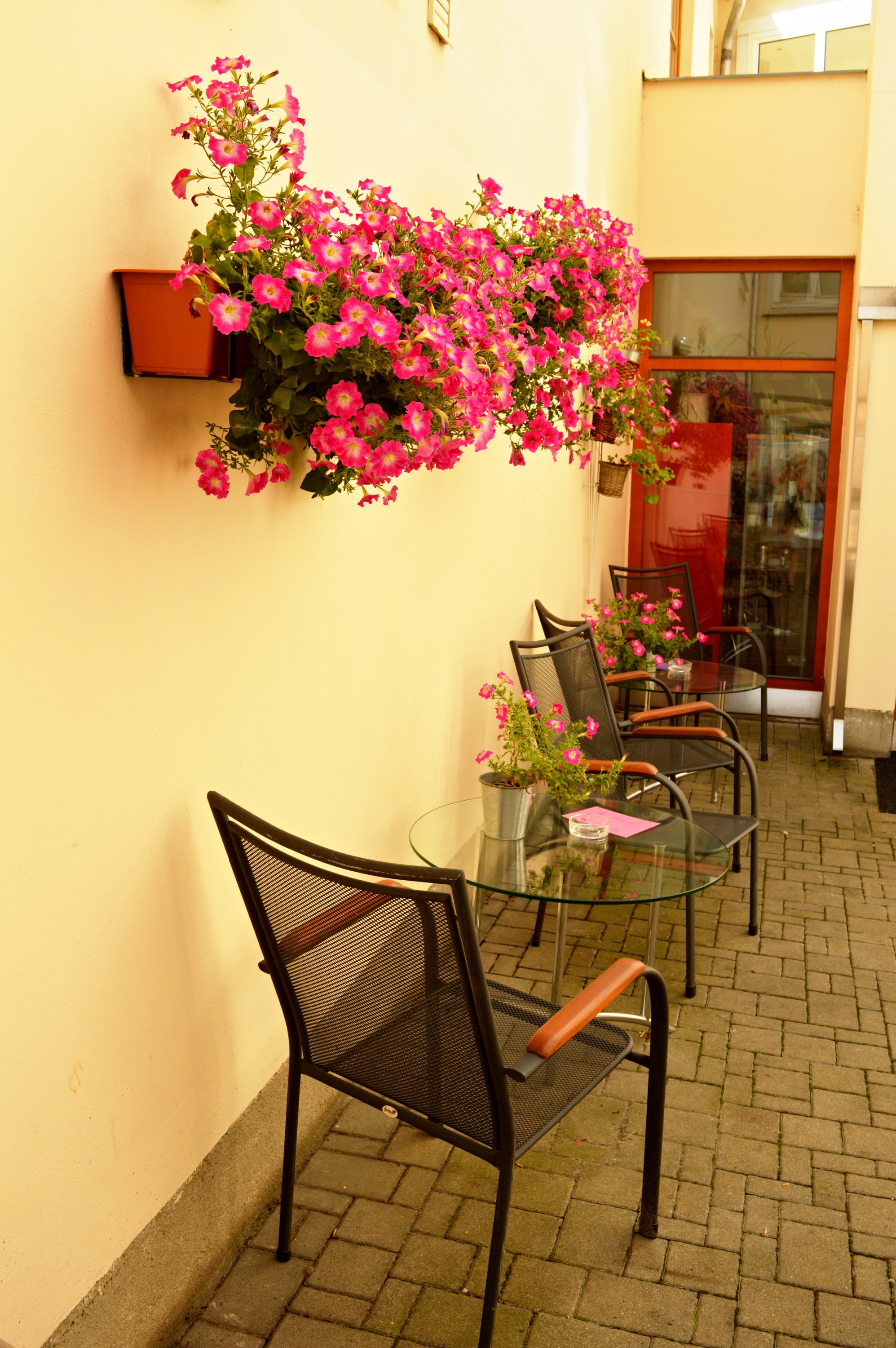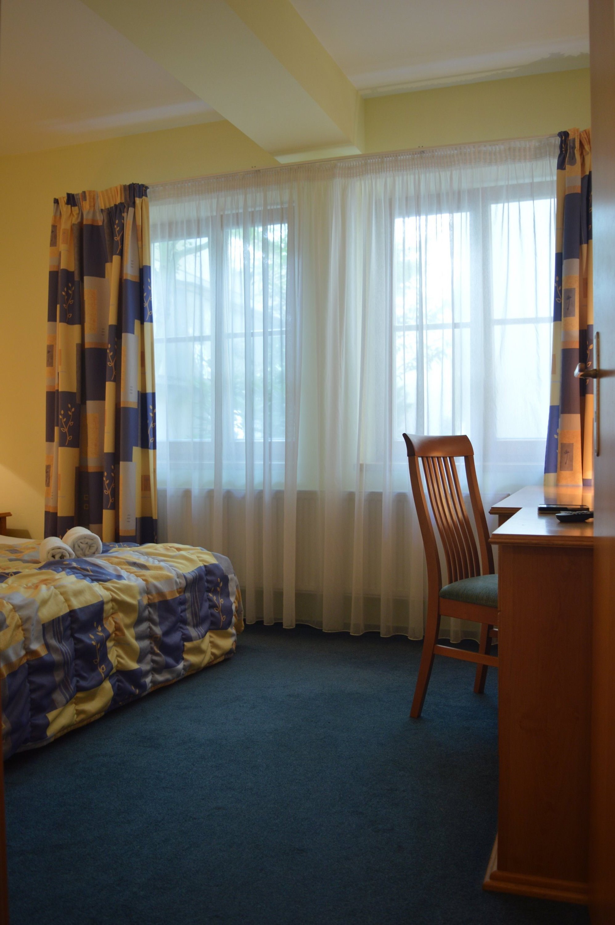 Pokoj je v prvním patře s výhledem do klidného dvora nebo do zahrádky.