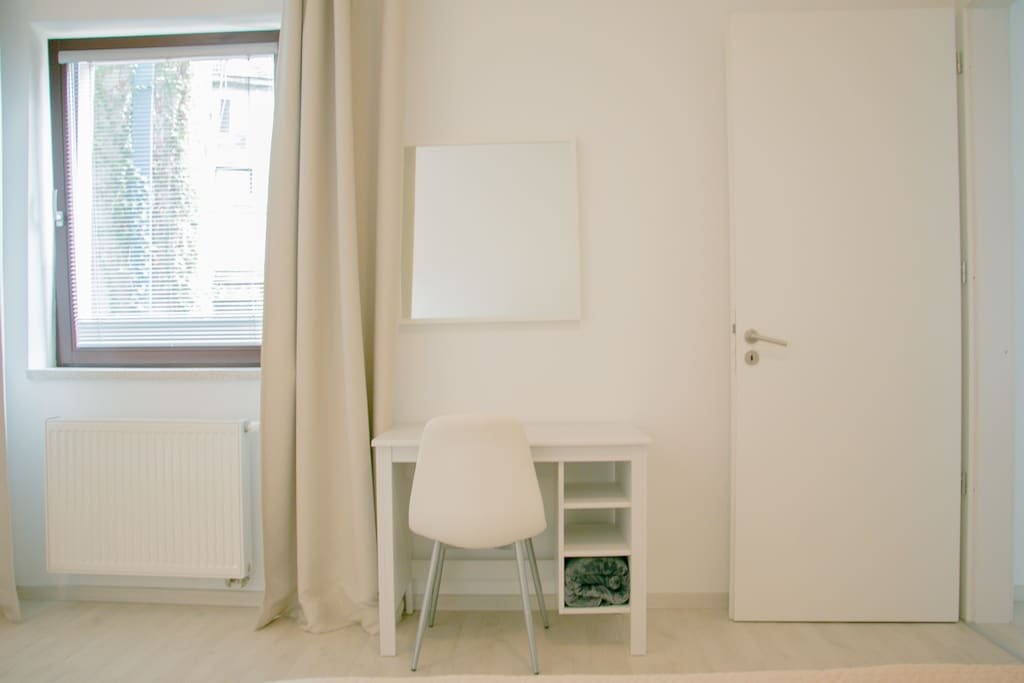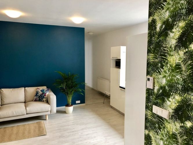 Náš byt má dvě oddělené ložnice s velkými manželskými postelemi, plně vybavenou kuchyň s kávovarem, obývací pokoj s novou pohovkou, velkou koupelnu, WC a sladký balkon s květinami.