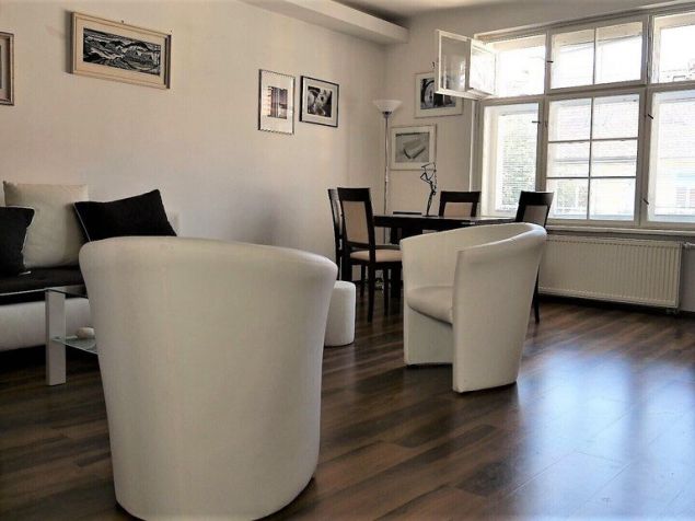 Moji hosté by měli celý můj 70m2 byt pro sebe, včetně 30m2 obývacího pokoje.