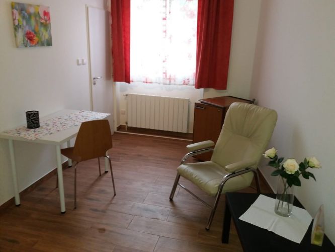 pěkná garsonka s výhledem do zahrady v lehce sníženém přízemí