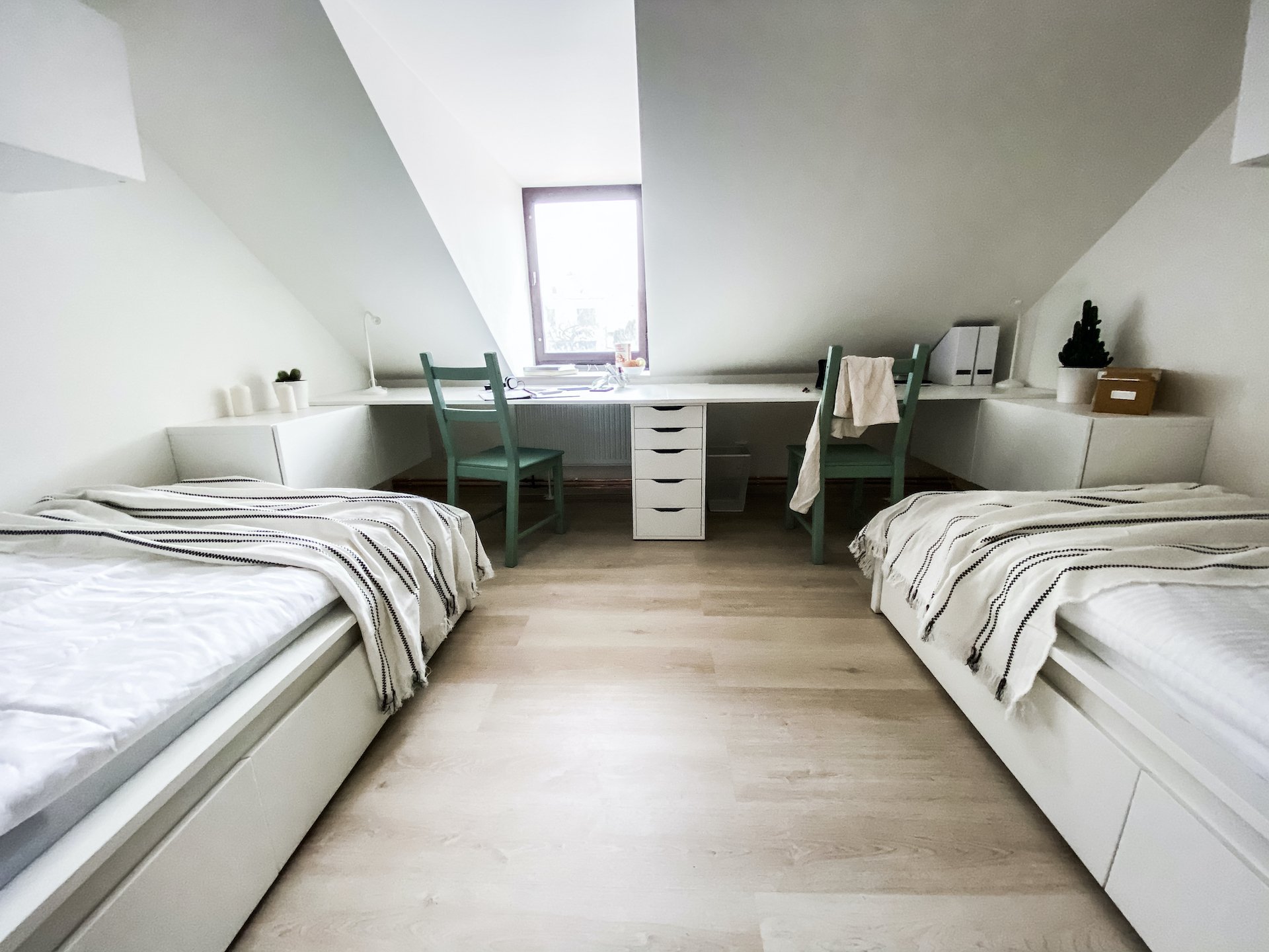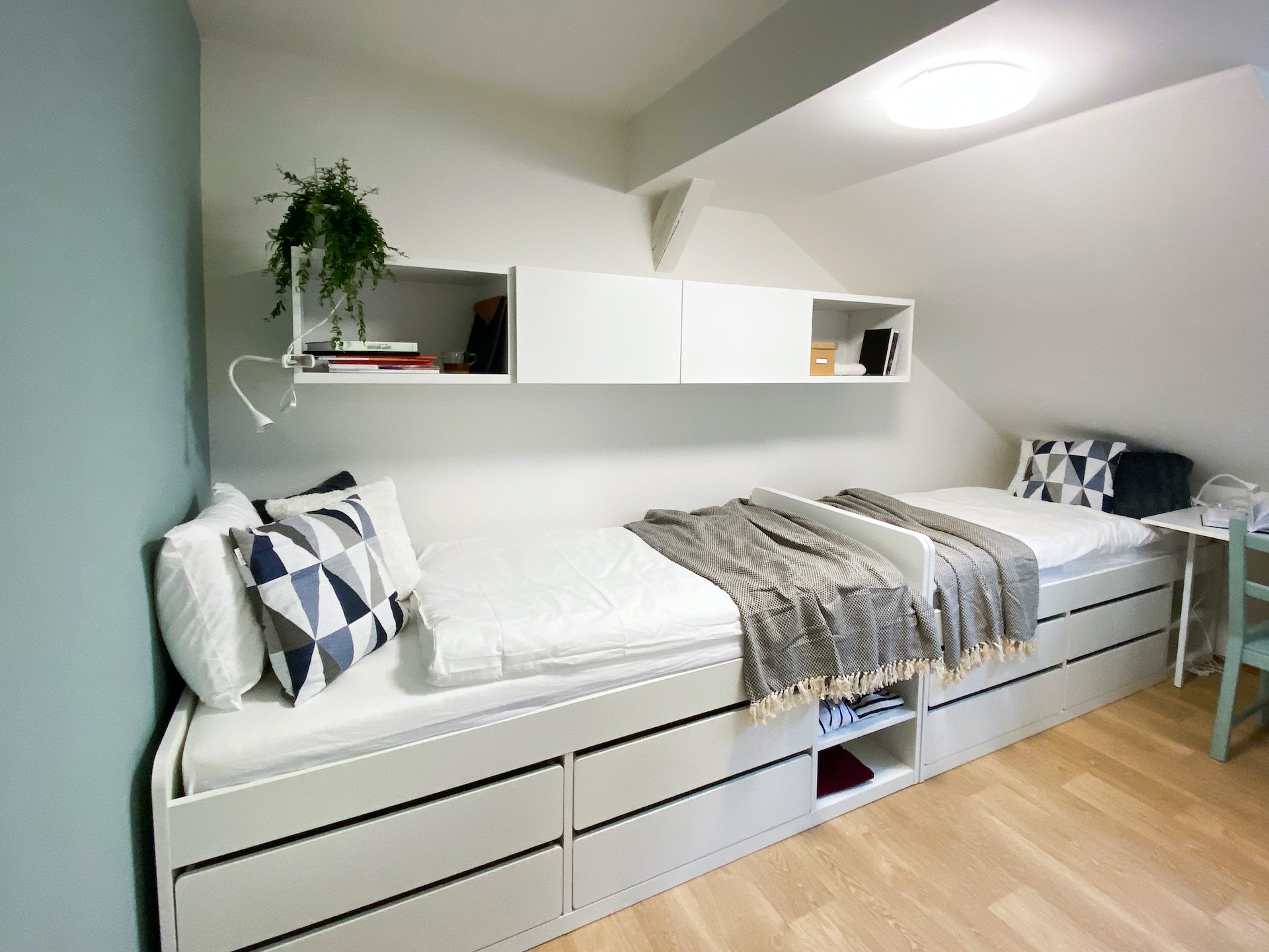 The rooms are located in a student house with two bathrooms, two kitchens and a yard with an outdoor kitchen (grill) and seating. The house also includes a laundry with a professional washing machine.