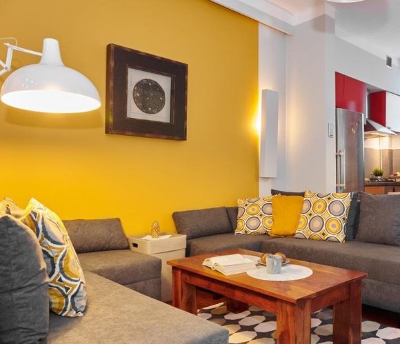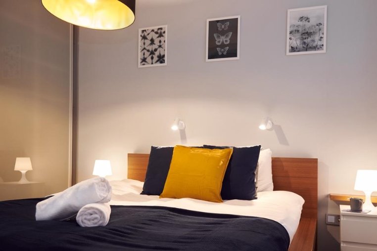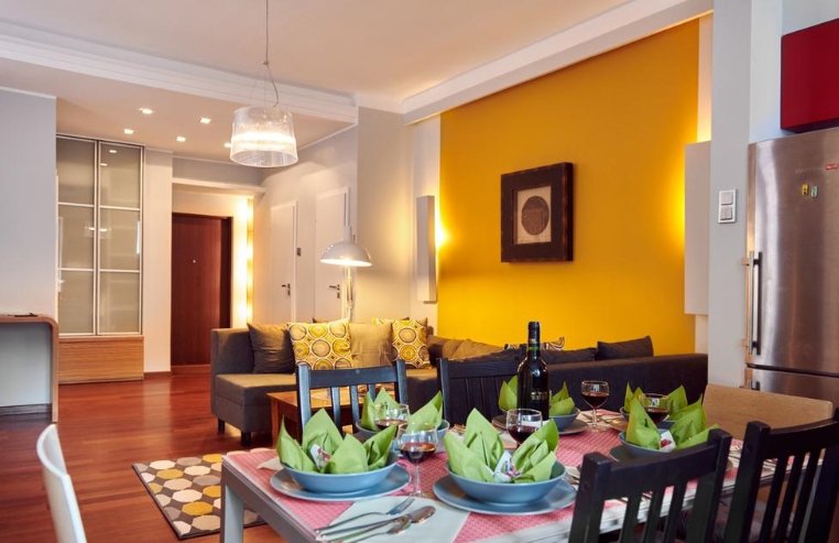 Tento apartmán má 1 ložnici, obývací pokoj a TV s plochou obrazovkou, vybavený kuchyňský kout s jídelním koutem a 1 koupelnu se sprchou a pračkou.