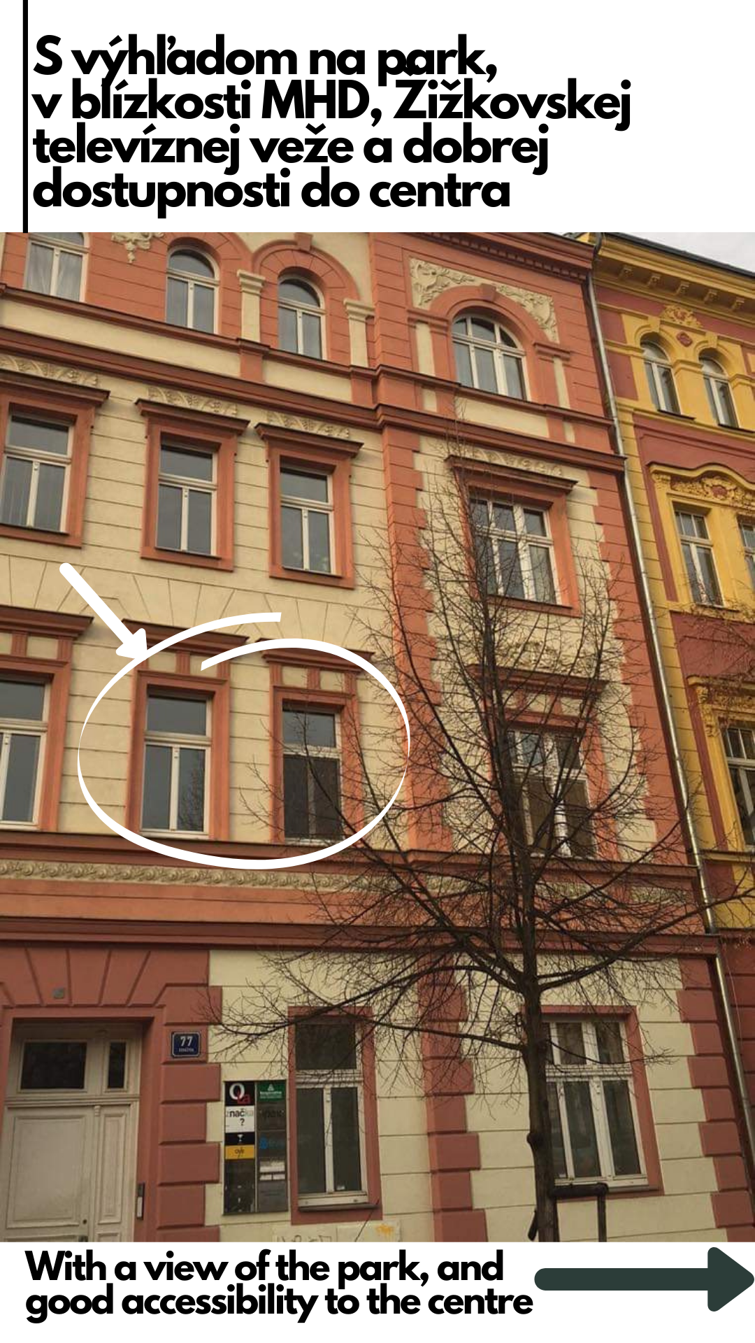 Byt je na prvom poschodí, plne vybavený s moderným zariadením, s dobrou dostupnosťou do centra, výhľadom na park a dvoma super spolubývajúcimi (pracujúce holky). V blízkosti Billa, Lidl, park Vítkov, MHD zastávka Lipanská/Biskupcova/Černínova. Dog friendly