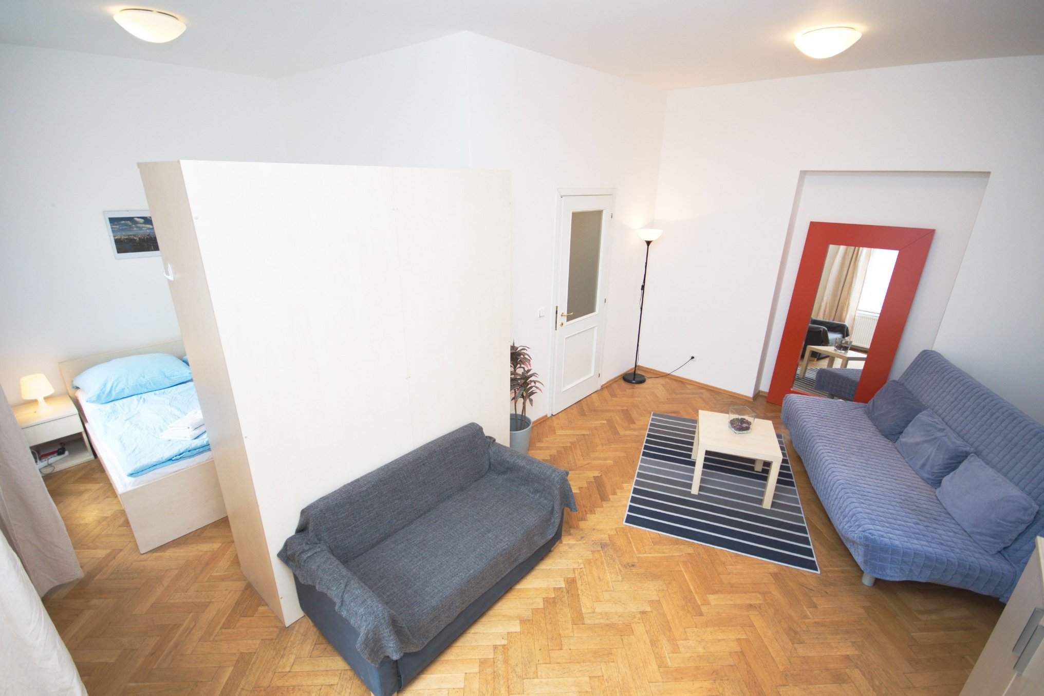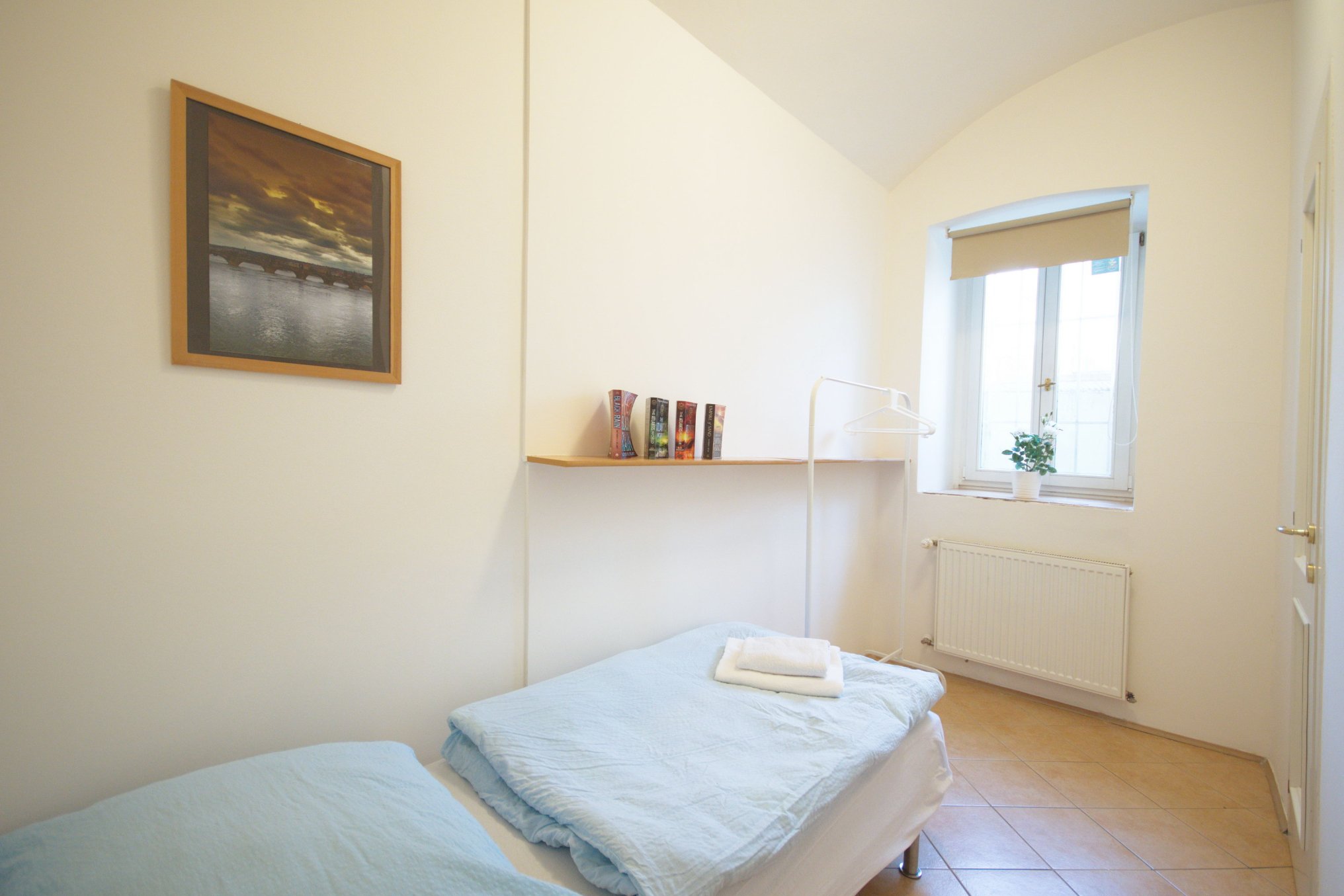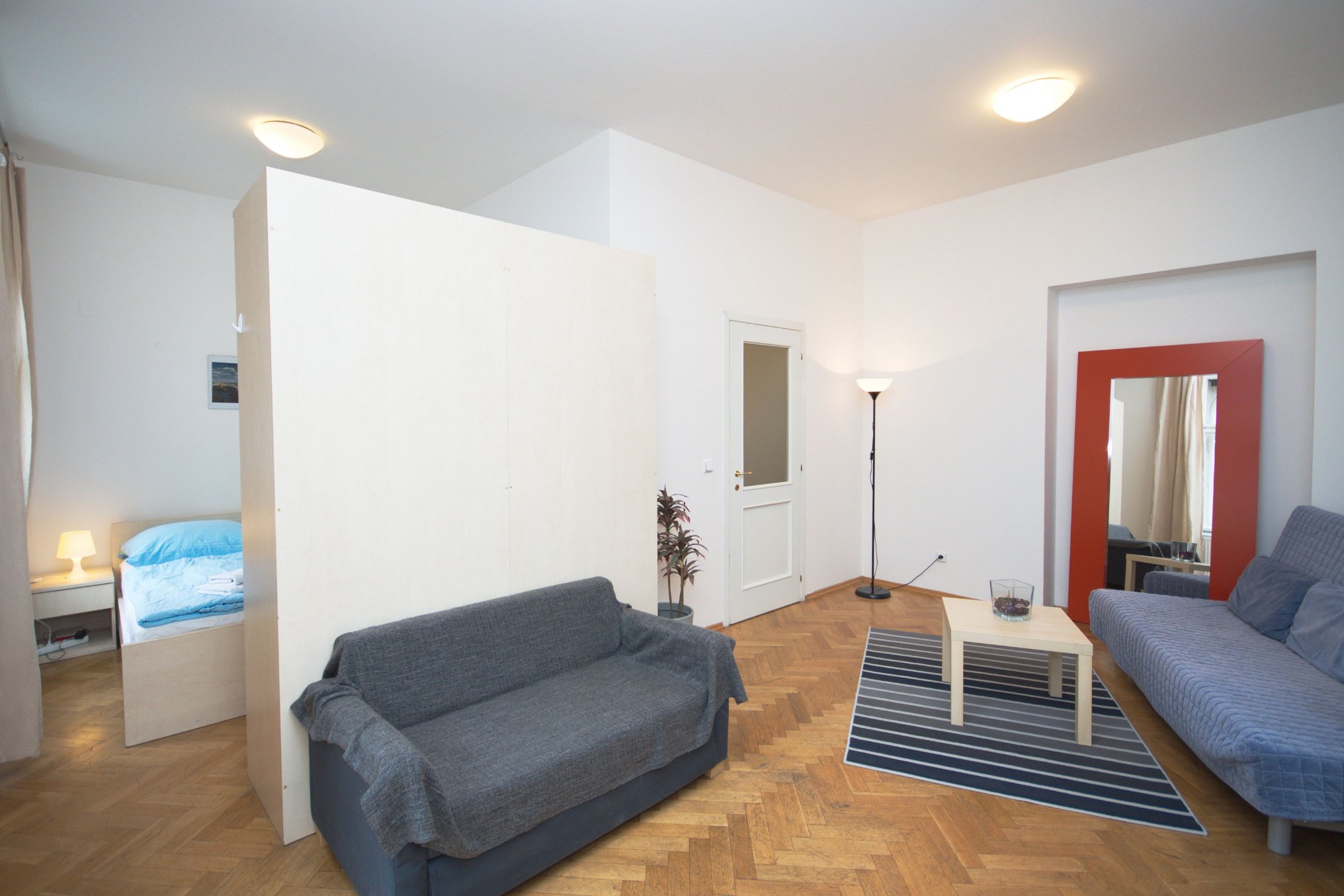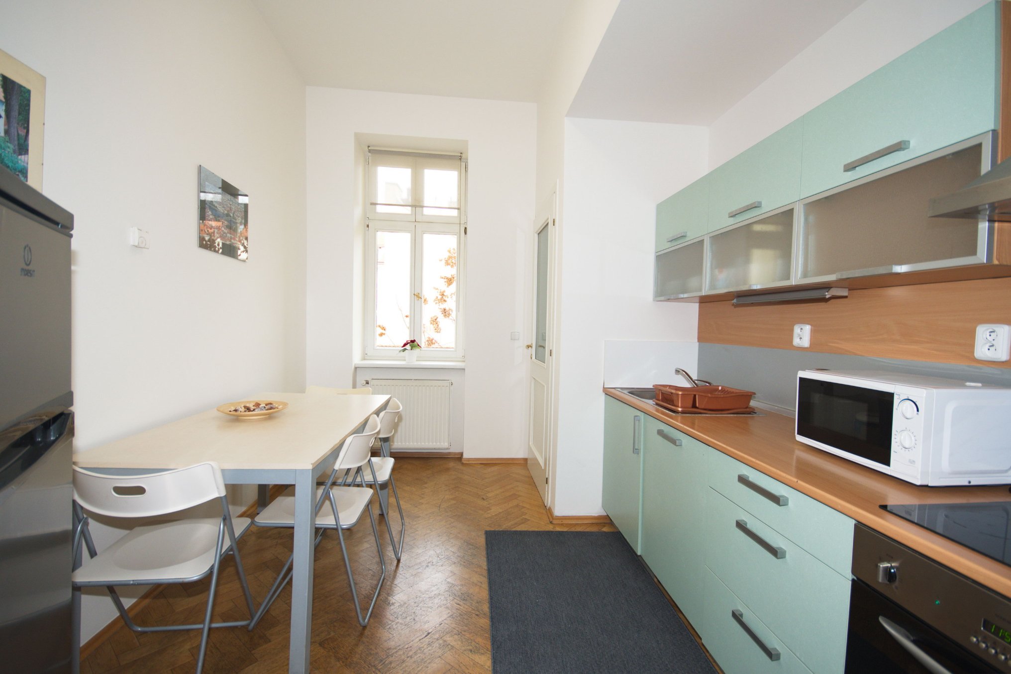 Byt se nachází v historické budově na Praze 3 u klidného náměstí s kavárnou.. Byt je kompletně vybavený.