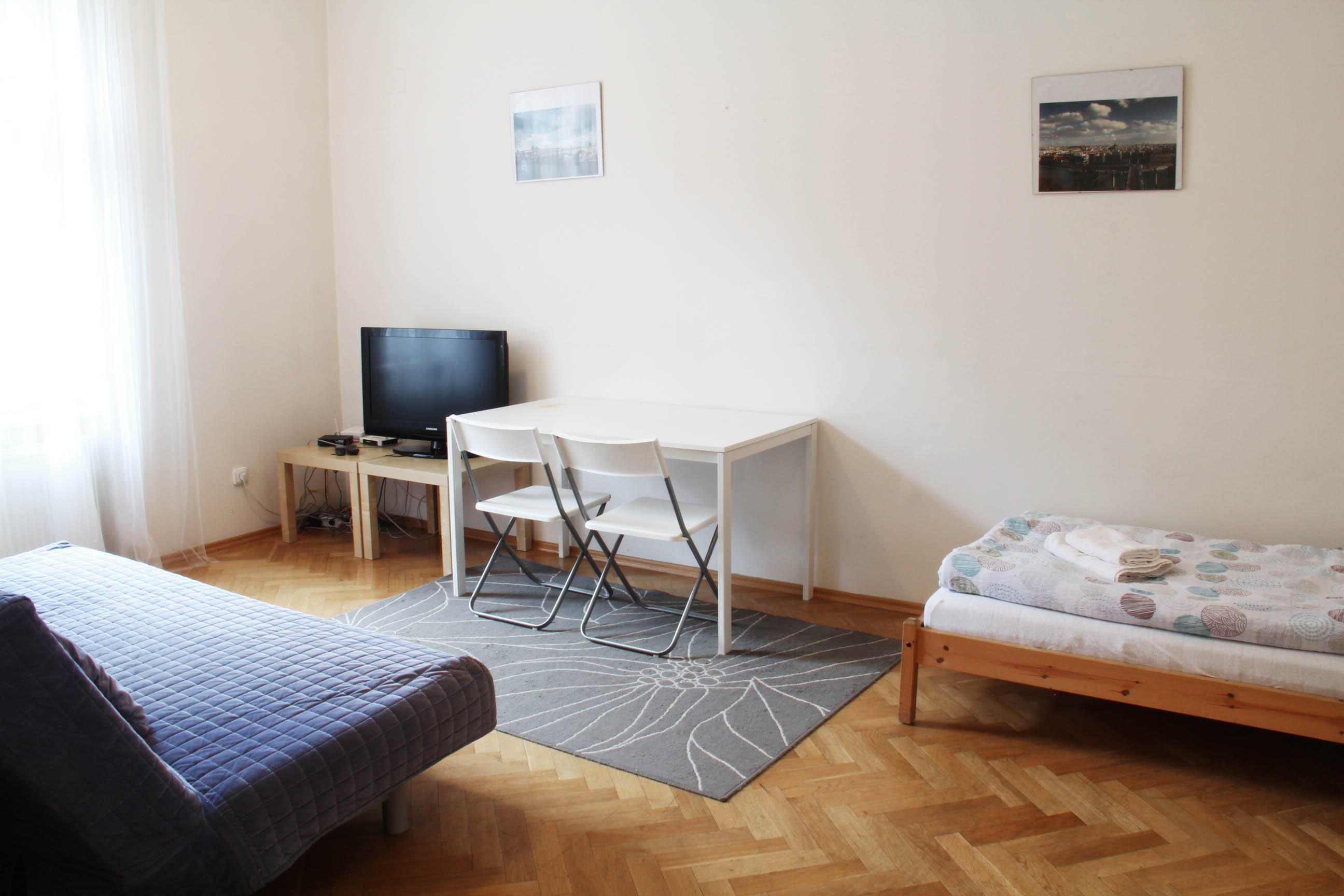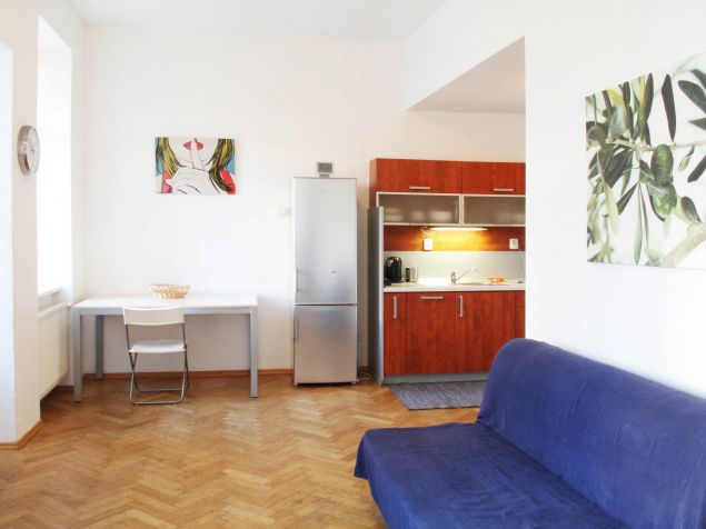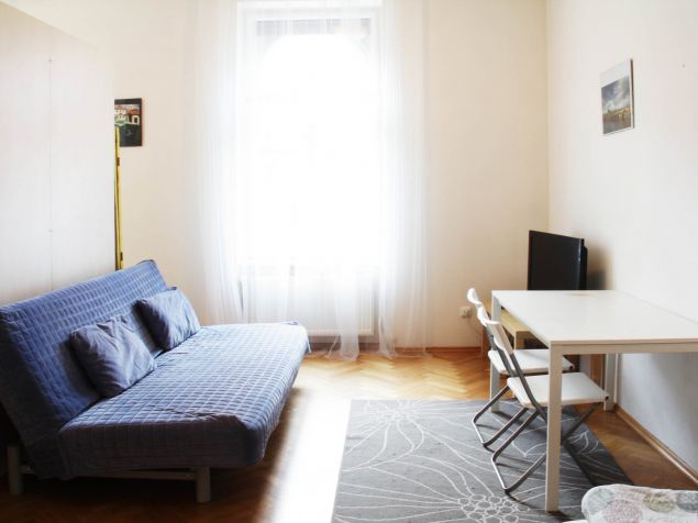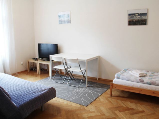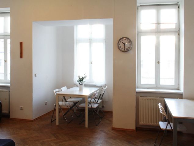 Byt se nachází v historické budově na Praze 3, u náměstí s kavárnou. Byt je celkově vybavený.