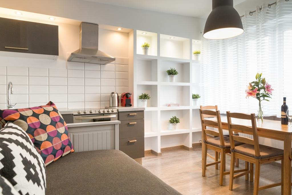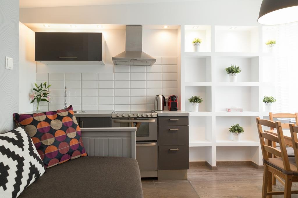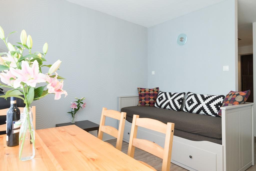 Apartmán má 1 ložnici, satelitní TV s plochou obrazovkou, vybavený kuchyňský kout s myčkou a mikrovlnnou troubou, pračku a 1 koupelnu se sprchou.