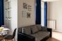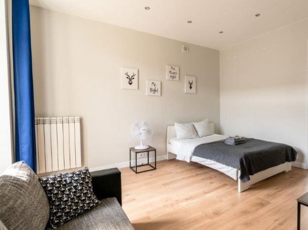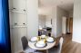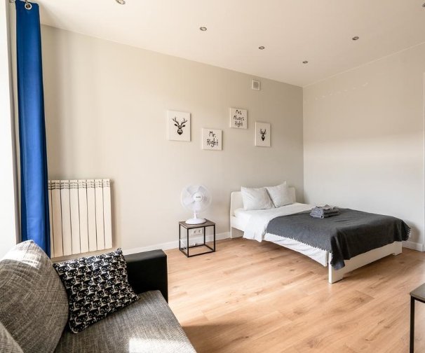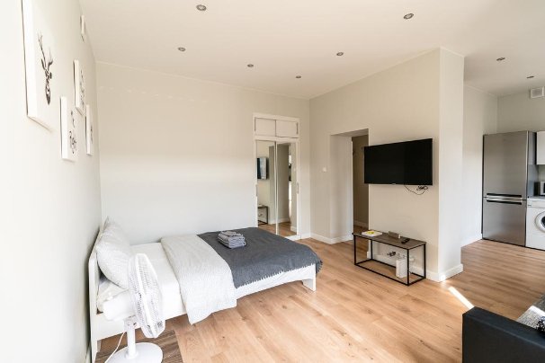 Apartmán má 1 postel, 1 pohovku, TV s plochou obrazovkou, vybavenou kuchyň s mikrovlnnou troubou a lednicí, pračku a 1 koupelnu se sprchou.