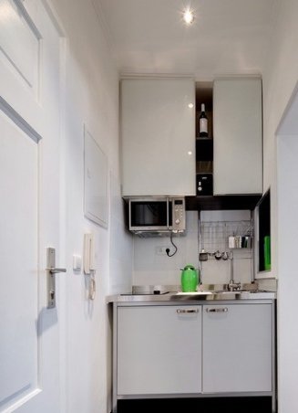 Velmi krásná kuchyně, mikrovlnná trouba, sklokeramická deska, nádobí, lednice s integrovaným mrazákem