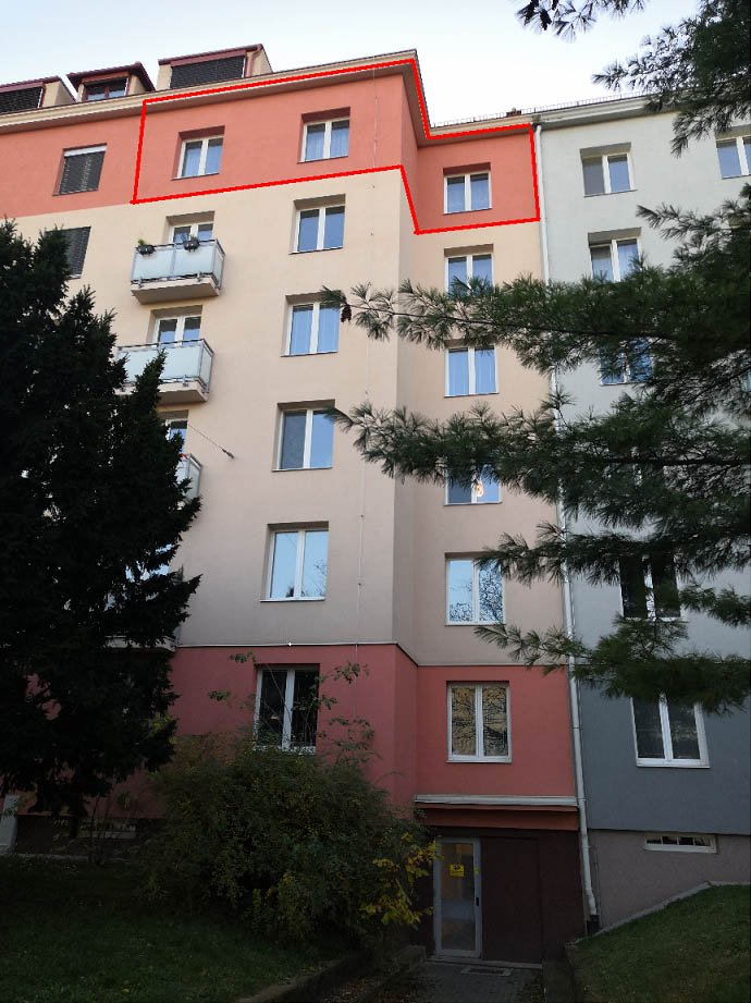 Byt (62m2) se nachází v 6. nadzemním podlaží zrekonstruovaného bytového domu s výtahem.