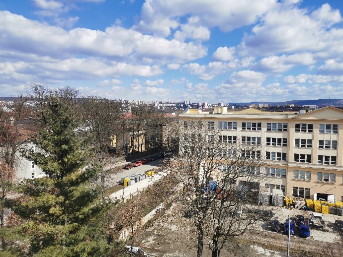 V okolí veškerá občanská vybavenost. U domu zastávka MHD. Dostupnost centra hromadnou dopravou do 5ti minut. Před domem vede cyklostezka do centra Brna, nedaleko park Šelepka. Byt je vhodný především pro studenty, nekuřáky, bez zvířat. Uplatňujeme právo vybrat si nájemníky podle vlastních kritérií. Byt je k nastěhování ihned.