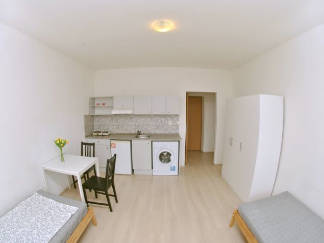 We offer free apartment 1 + kk for 1-2 persons on Spolkova street near the city center. The apartment has a total of 1 room with kitchenette and bathroom with toilet. The room is equipped with two beds incl. mattresses. The kitchenette has an oven, fridge and washing machine.