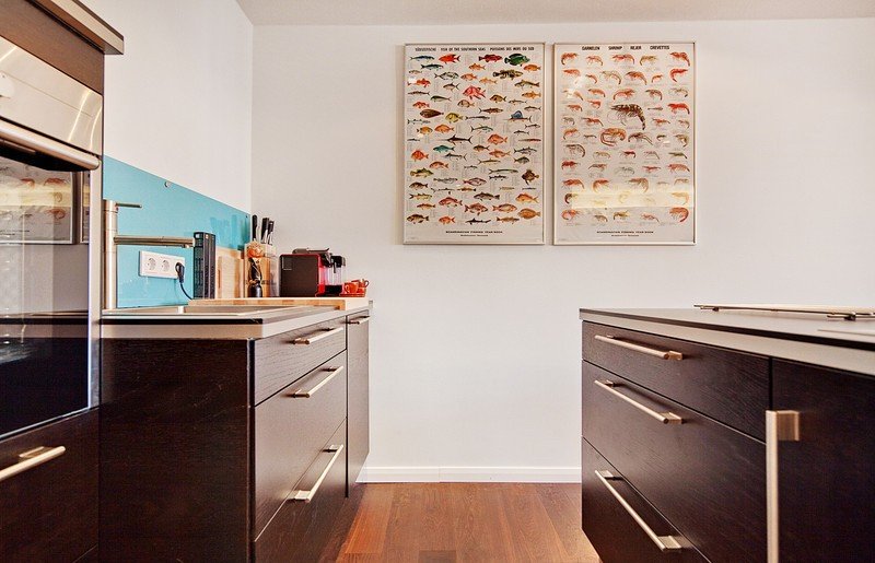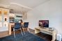 Kvalitní kuchyň otevřená do obývacího prostoru opticky oddělená barem, plně vybavená, elektrická trouba, sklokeramická deska, lednice, myčka.