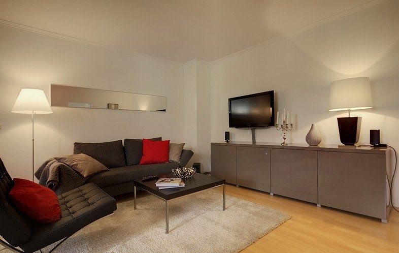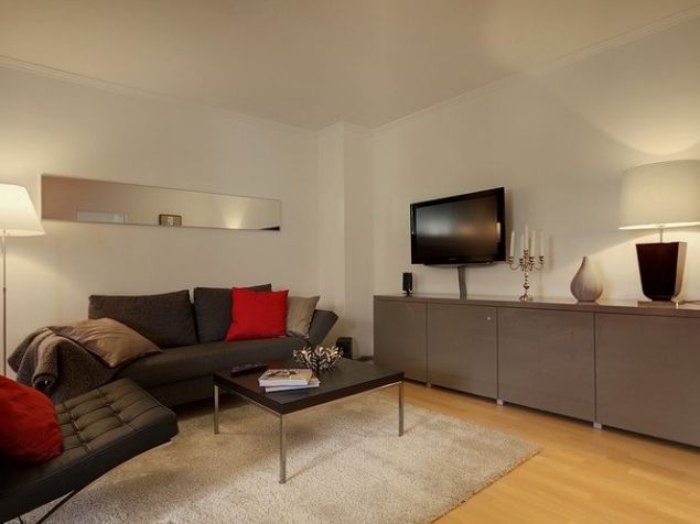 koupelna s vanou. V obývacím pokoji parkety, v kuchyni dlažba, v koupelně dlažba. Nábytek: vysoce kvalitní, moderní a elegantní styl. Velmi dobře vybavená kuchyň, dobře vybavené, myčka, mrazák, mikrovlnná trouba, sklokeramická deska, elektrická trouba.