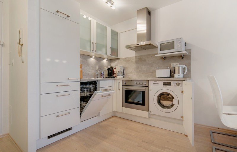Byt byl kompletně modernizován a je světlý a slunný. Bydlení s pohovkou (postel) a jídelním koutem. Ložnice s manželskou postelí. Velmi pěkná kuchyň do obývacího pokoje, sklokeramická deska, digestoř, elektrická trouba, mrazák, mikrovlnná trouba, myčka. Velmi dobrý nábytek a vybavení se vším, co potřebujete!