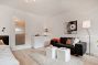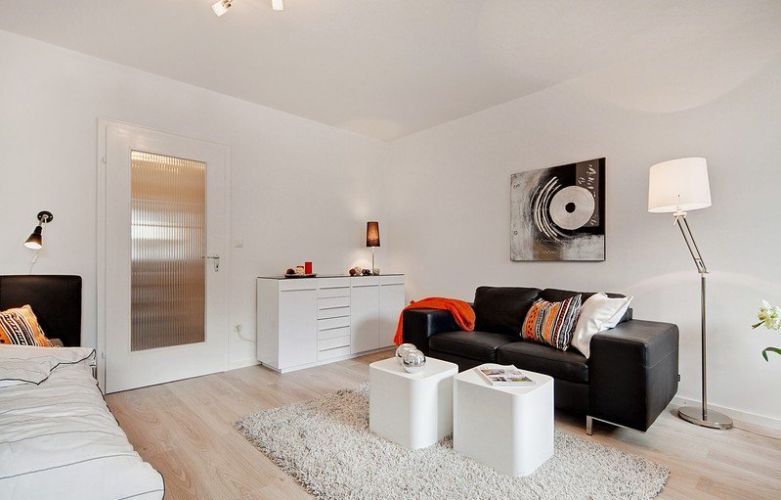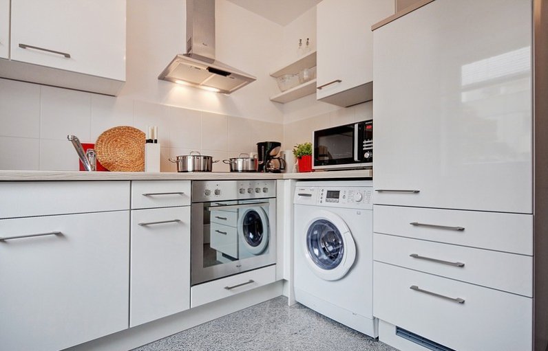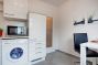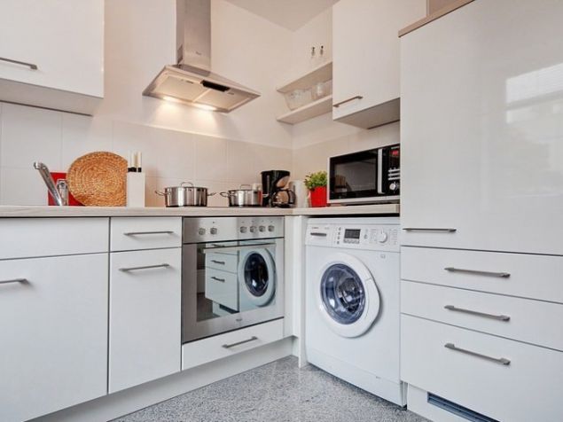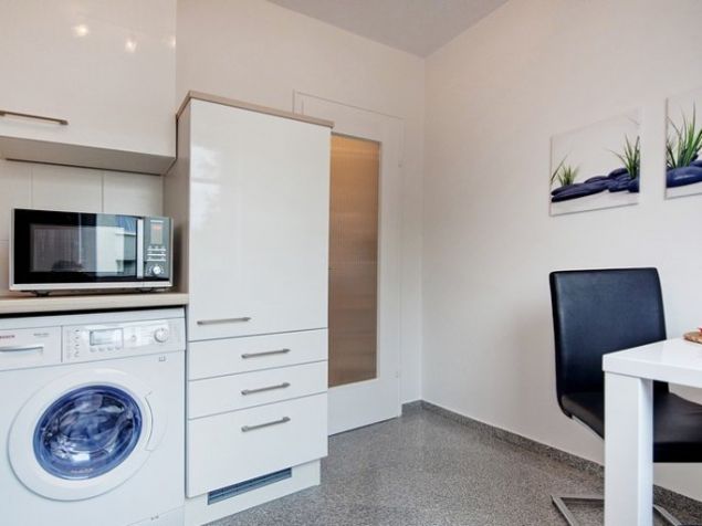 Kombinovaný obývací pokoj / ložnice: Postel 140 x 200 cm, kožená pohovka, stůl, židle, komoda, vestavěná skříň na chodbě. První použití, vysoce kvalitní nábytek. Velmi pěkná jídelna s oknem, digestoří, sklokeramickou deskou, elektrickou troubou, mikrovlnnou troubou, myčkou, lednicí s integrovaným mrazákem, jídelním stolem se 2 židlemi, plně vybaveným ...