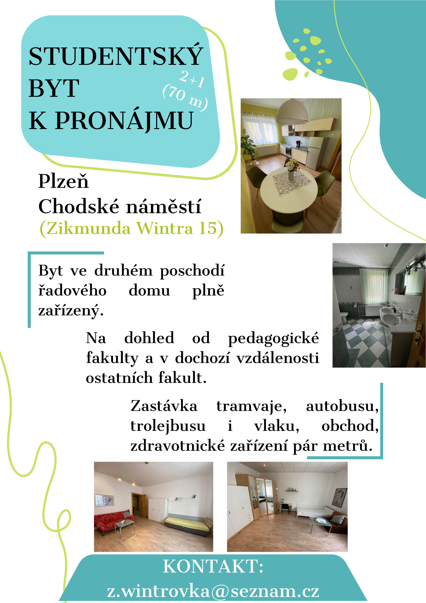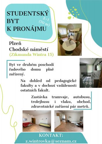 Byt se nachází v cihlovém 3poschoďovém domě na dohled od pedagogické fakulty a jen pár minut pěšky nebo přímým tramvajovým spojem od ostatních plzeňských fakult.
