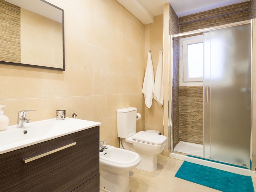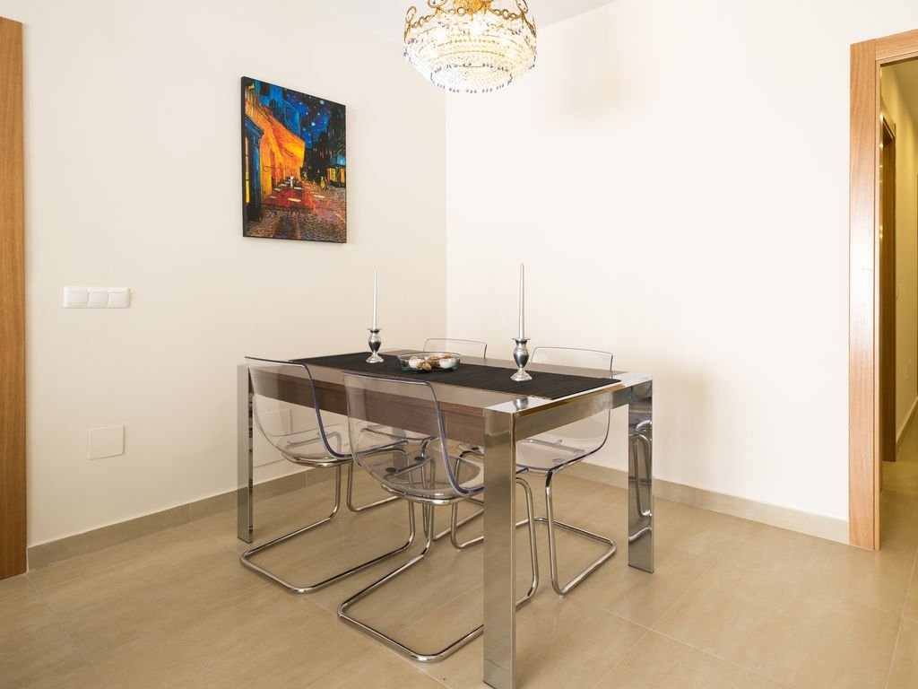 Zařízený byt, zrekonstruovaný nový. Skládá se ze tří dvoulůžkových pokojů, kompletních koupelen, otevřené kuchyně a velkého obývacího pokoje. Má parketové podlahy, venkovní hliníkové tesařské práce a topení.