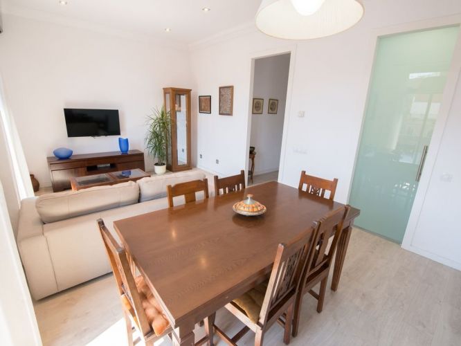 55 metrová podlaha. Obývací pokoj s balkonem, dvě dvoulůžkové ložnice, koupelna s vanou, kuchyň s technickou místností a pračkou, dvojitá okna, teracové podlahy. Budova s výtahem.
